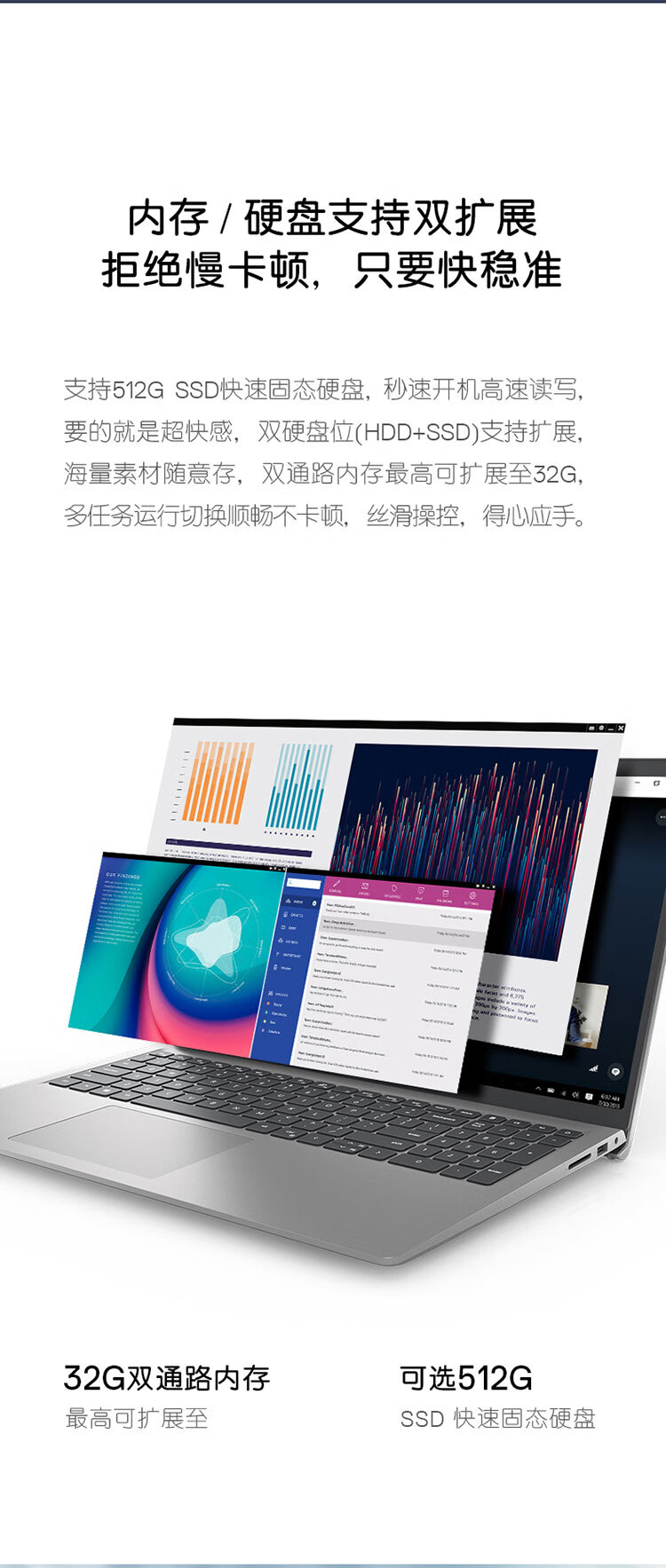 戴尔(DELL)3511灵越5000 15.6英寸i5超极轻薄本办公学生商务游戏手提高性能笔记本电脑 i5处理器/8G内存/512G高速固态 标配 自营