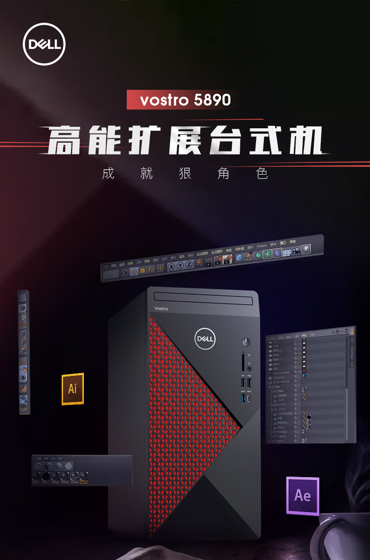戴尔dell成就5890台式机游戏主机电脑吃鸡电竞PS设计3D制图单主机酷睿6核i5-11400 16G 1T 256G Gtx1030 4G独显定 自带WiFi蓝牙 三年上门 自营