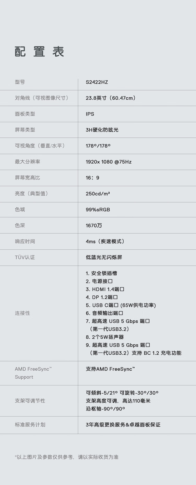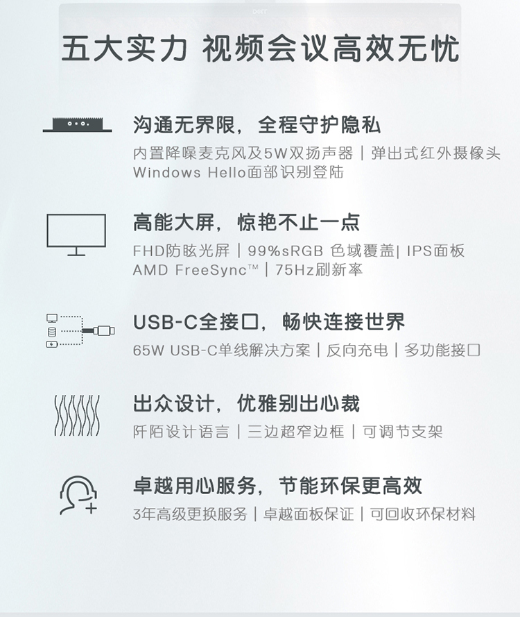 戴尔(DELL)23.8英寸 IPS Type-C 65W反向充电 防蓝光屏 内置音箱 摄像头 视频会议 电脑显示器 S2422HZ 自营