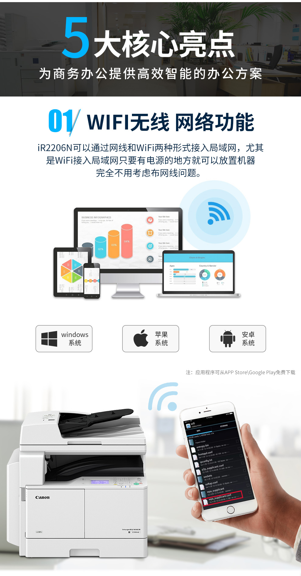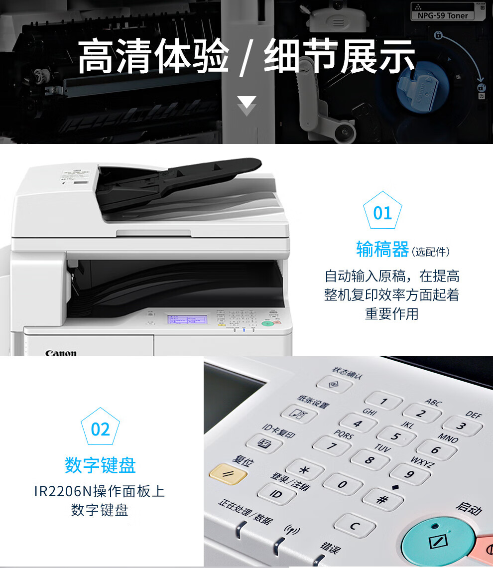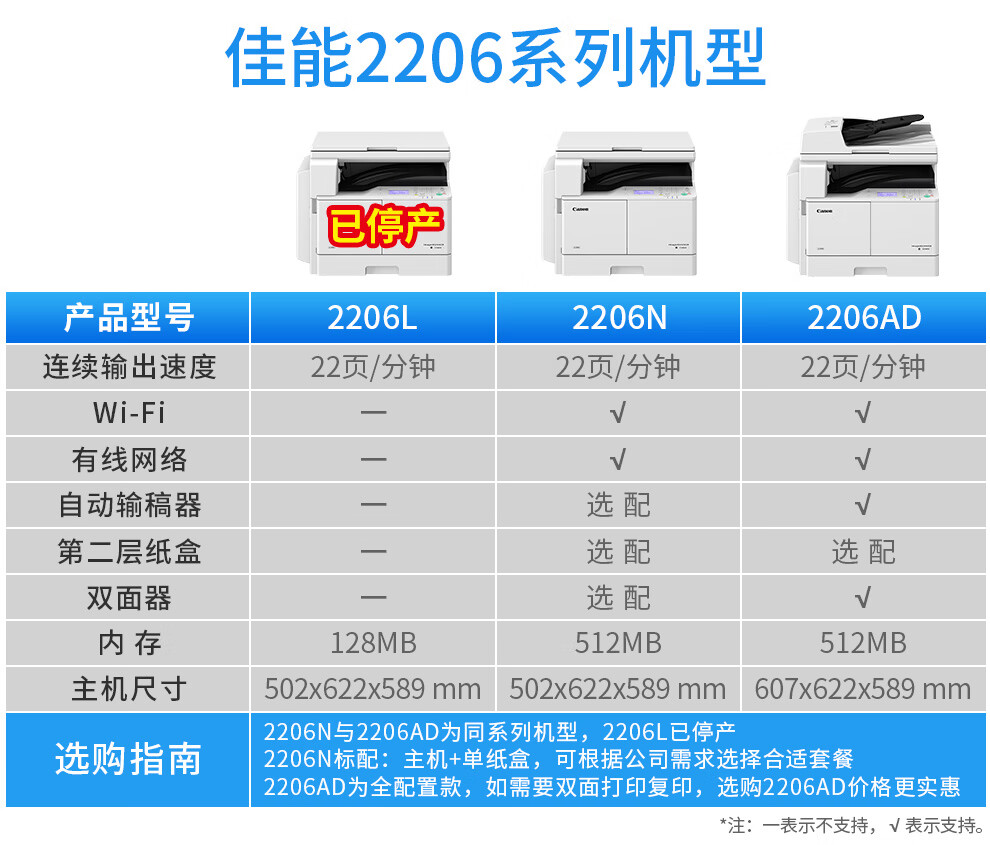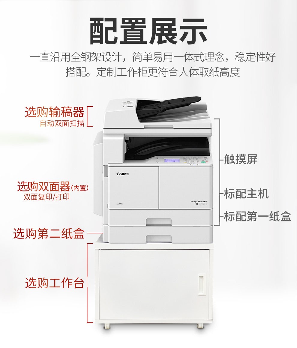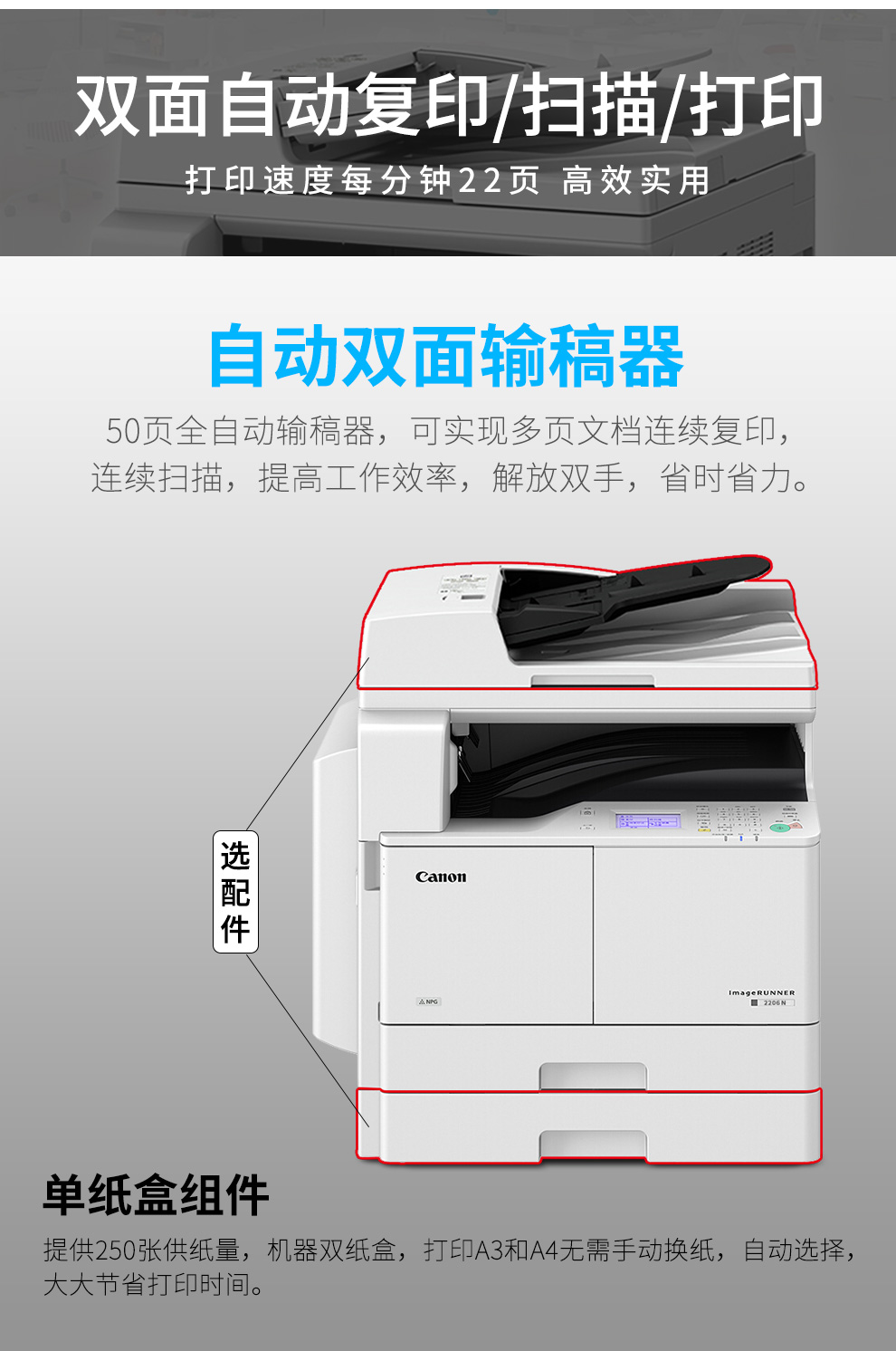 佳能(Canon)iR2206N/2206AD黑白复合机A3A4无线激光复印机办公扫描打印机一体机 2206N标配:主机+单纸盒 (无线WiFi) 佳能复合机 自营