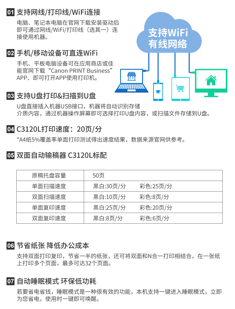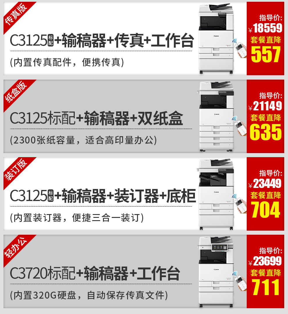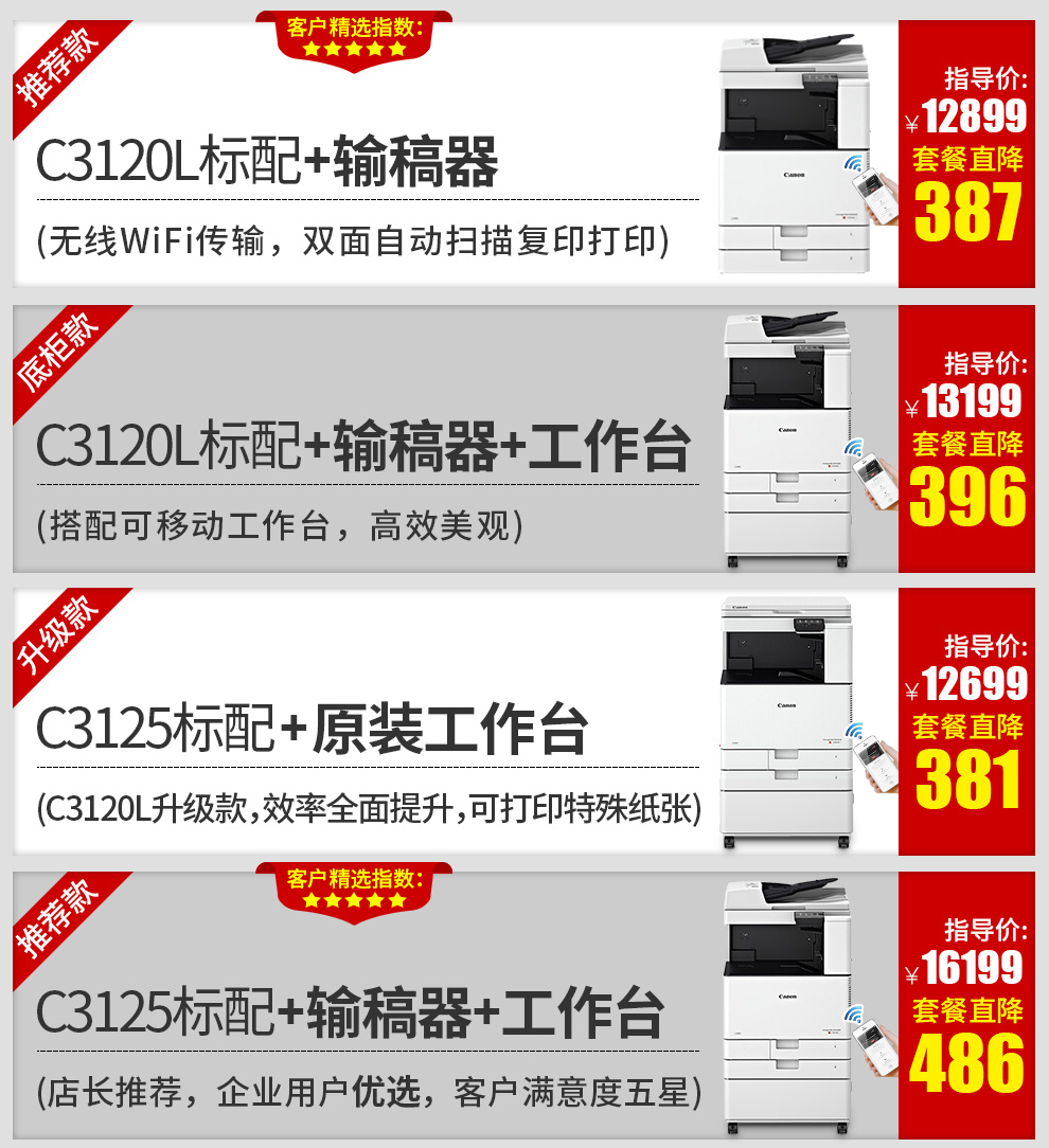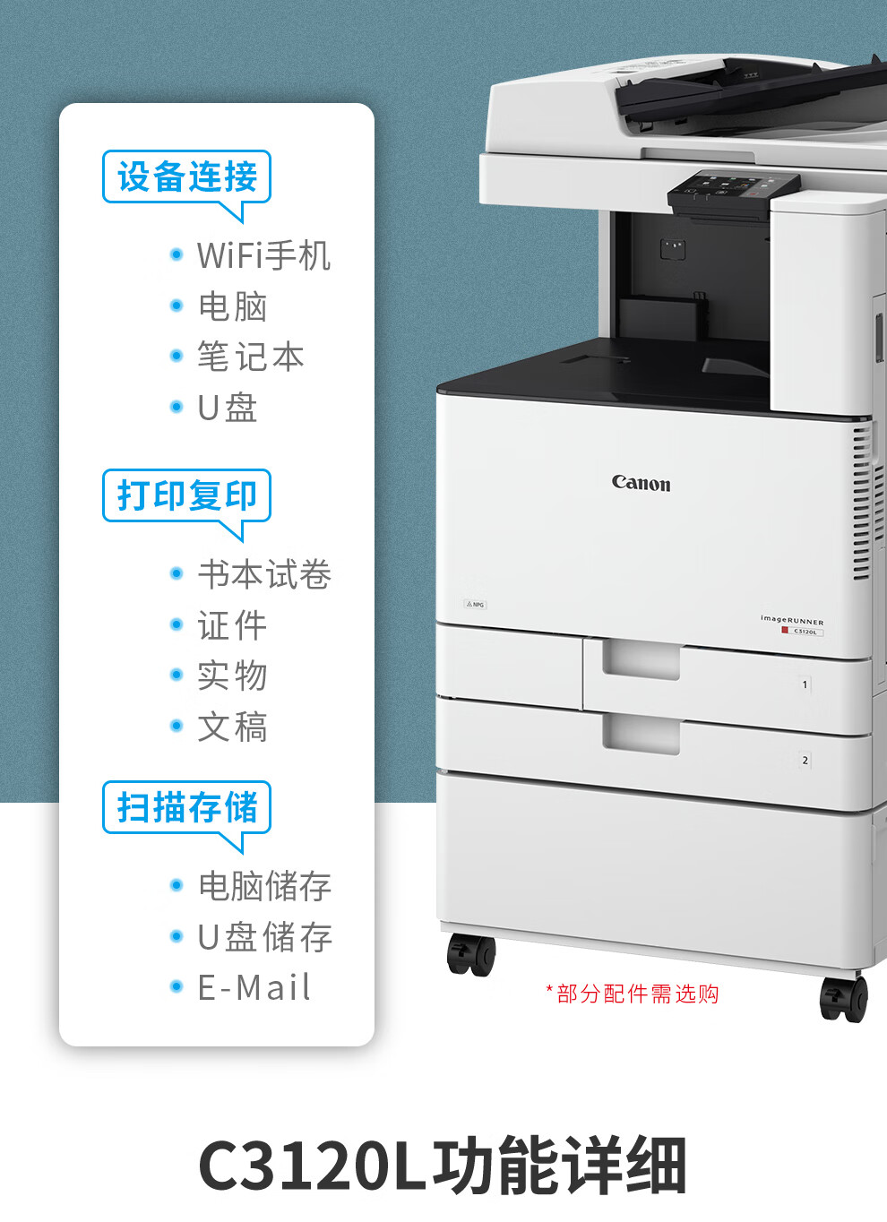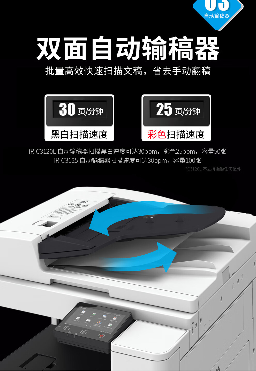 佳能打印机C3125/C3120L/C3226彩色大型无线激光A3A4办公商用打印复印扫描一体复合机 【推荐】C3120L标配(无线WiFi、批量扫描) 彩机C系列 自营