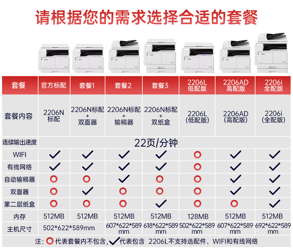 佳能复印机2206N 2206AD黑白激光打印大型办公扫描A3A4无线WiFi一体商用复合机 【升级版】2206N官方标配(含主机+盖板) 自营