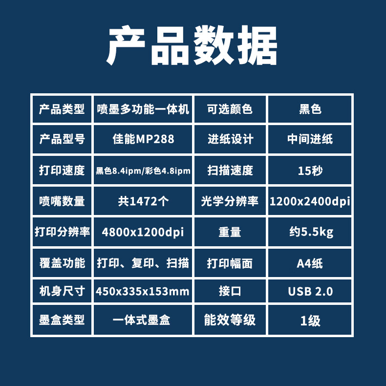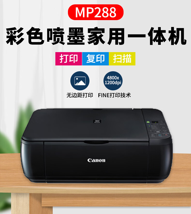 佳能MP288喷墨A4彩色学生办公一体机打印 复印扫描多功能一体机 自营