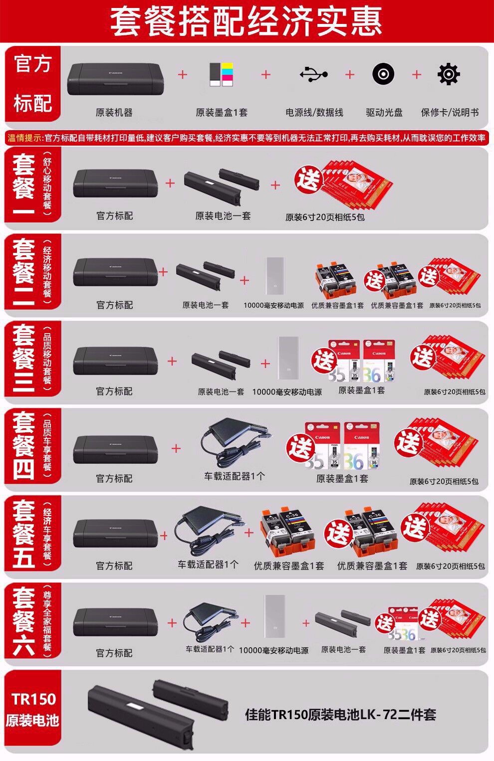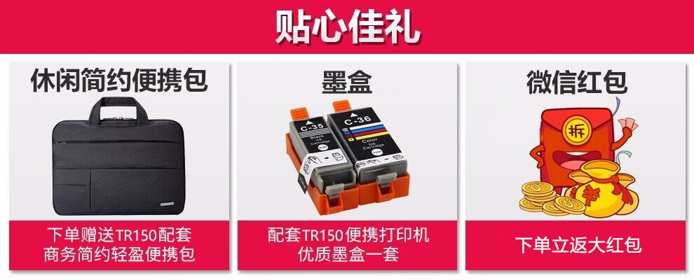 佳能PIXMA TR150便携式打印机A4移动无线WiFi喷墨照片打印机替代ip110 原装 官方 原装 【佳能仓】活动二选一 下单请备注 自营