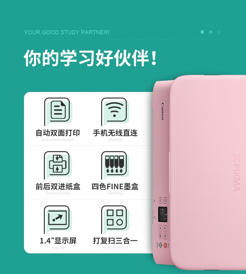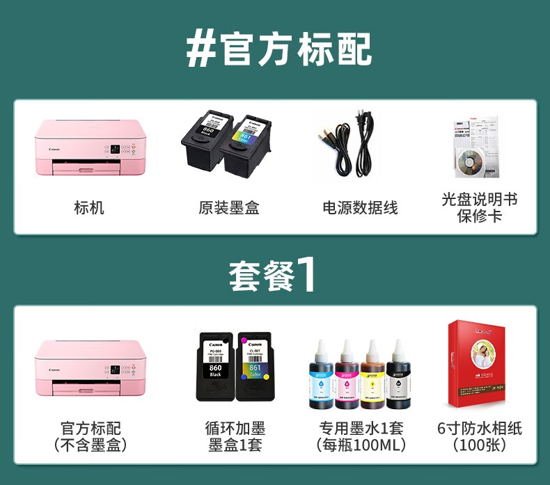 佳能TS5380无线家用照片打印机彩色喷墨复印扫描双面一体机ts5080升级版 绿色官方标配 自营