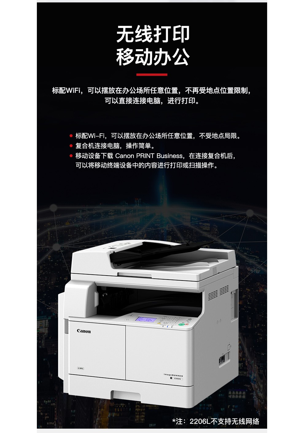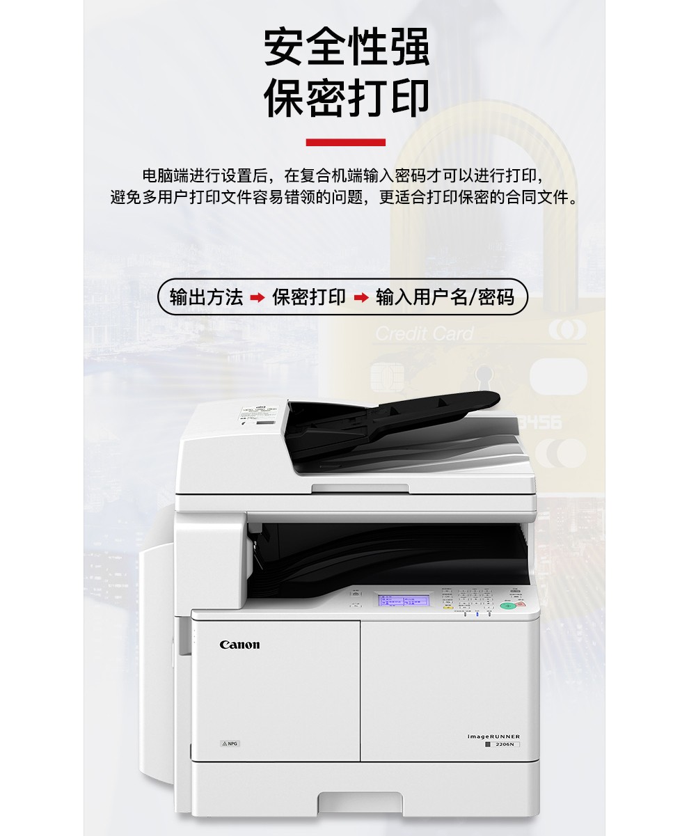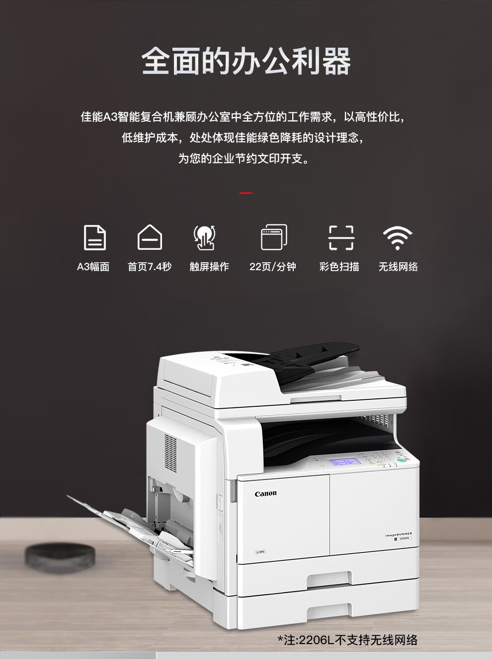 佳能复印机2206n/2206ad/2204n无线黑白激光A3A4复合机打印机扫描机一体机商用办公 2206n官方标配 自营