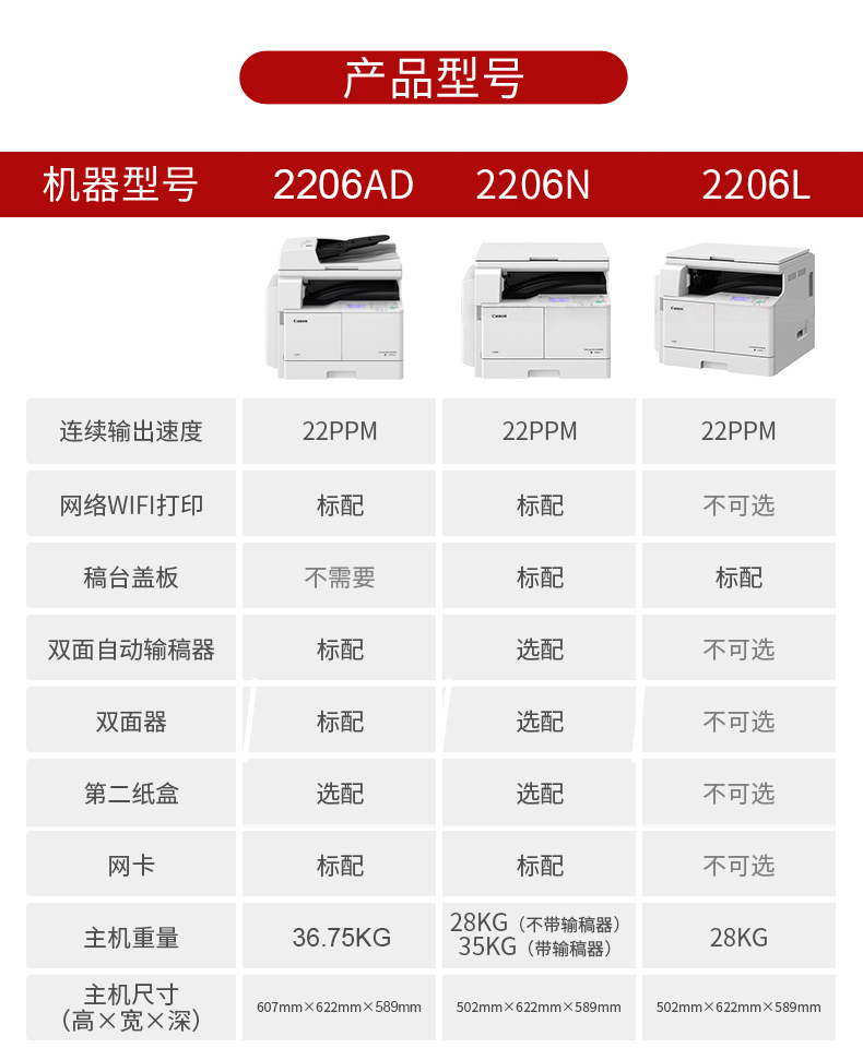 佳能2204升级款新品IR2206N/AD无线复合机a3激光黑白大型打印机复印机扫描多功能一体机 主机标配 自营