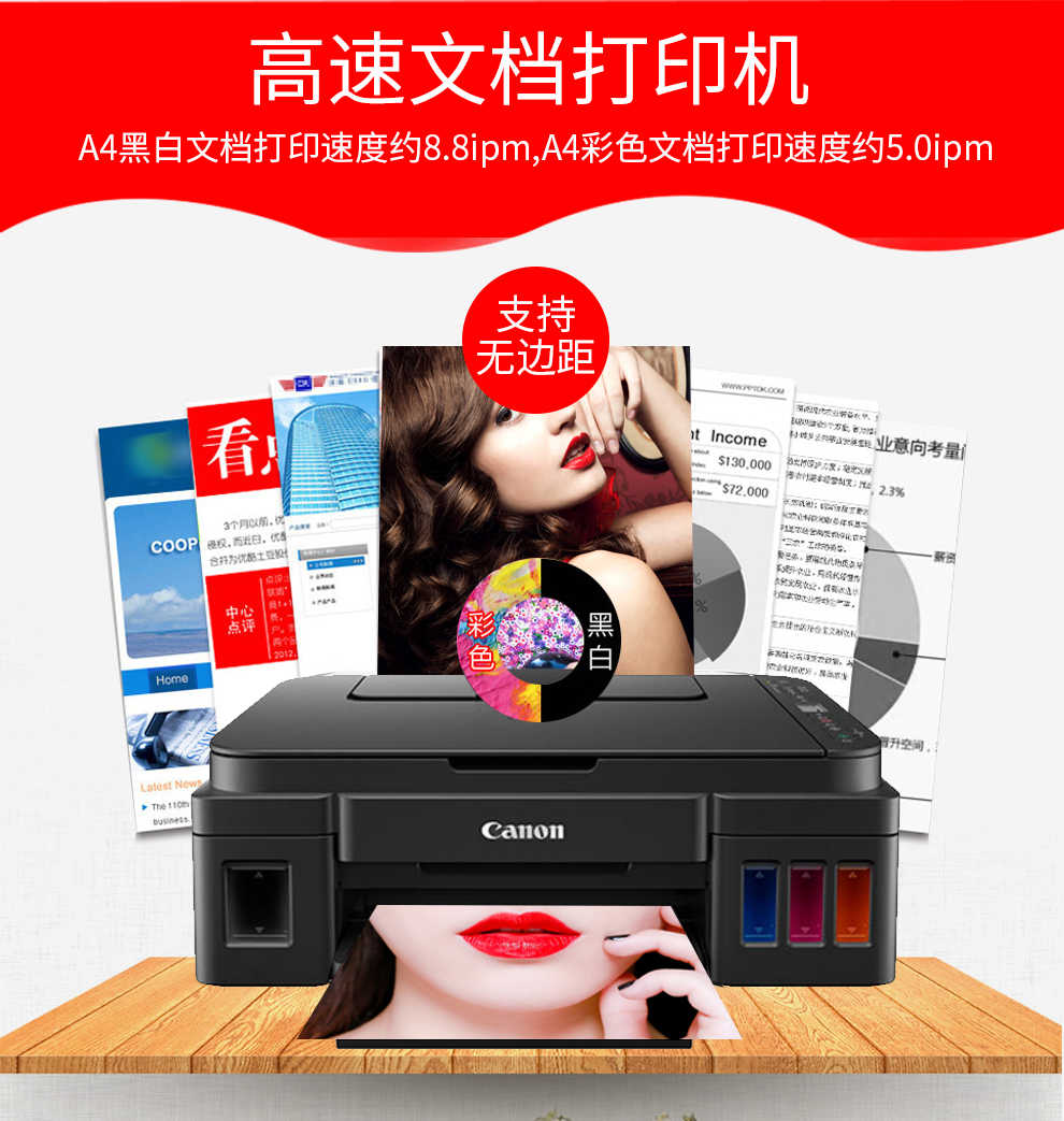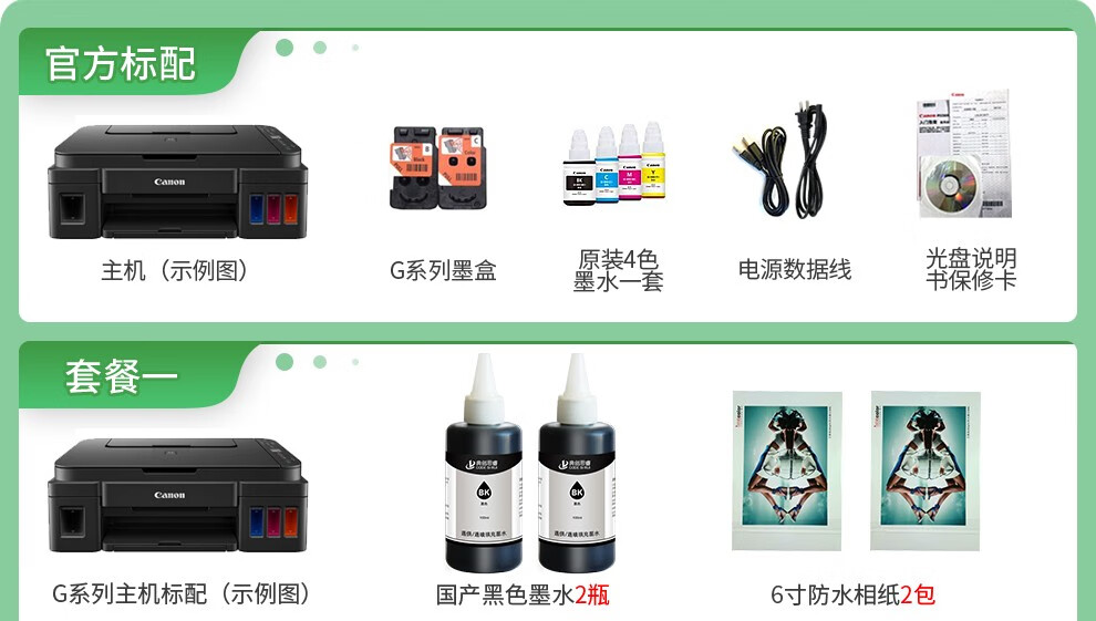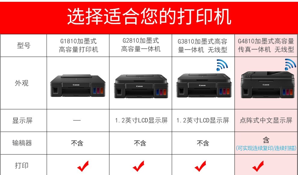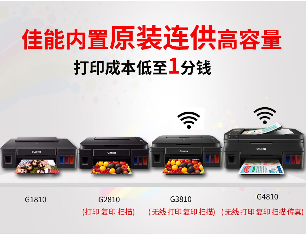 佳能G1810/2800/3810/4810家用商用办公彩色照片连供打印机复印扫描一体机 USB款G2800【打印/复印/扫描】 官方标配【内含随机墨水1套】 自营