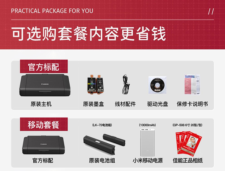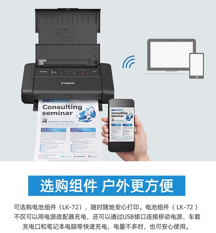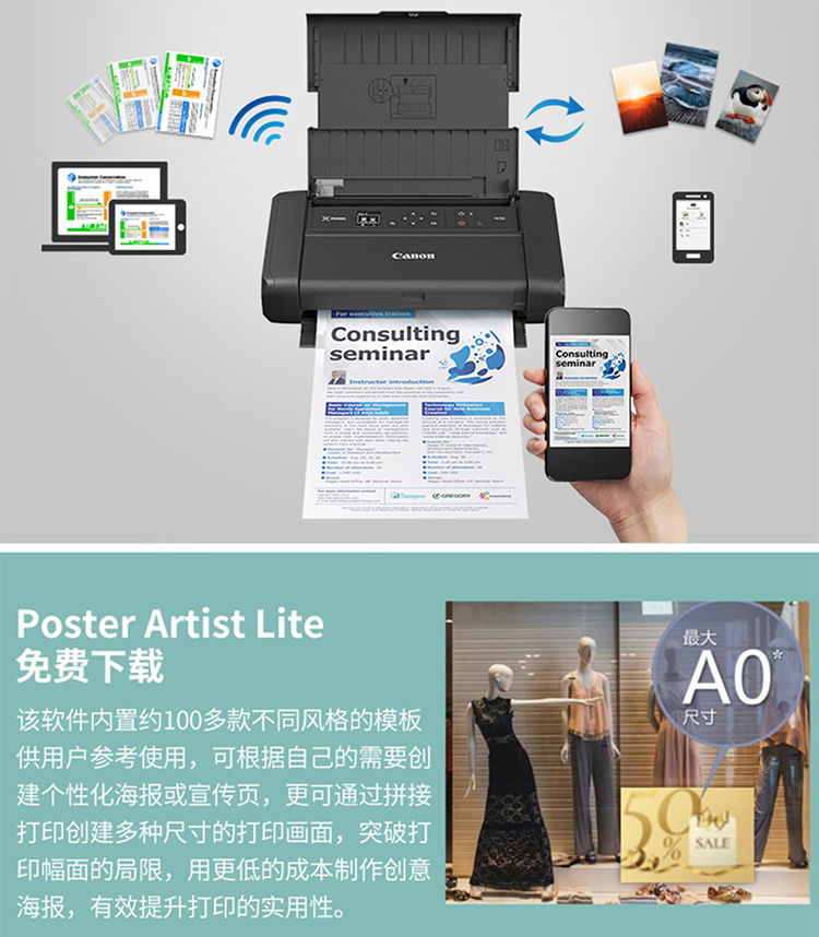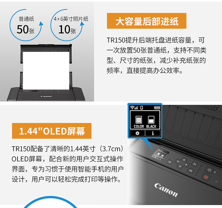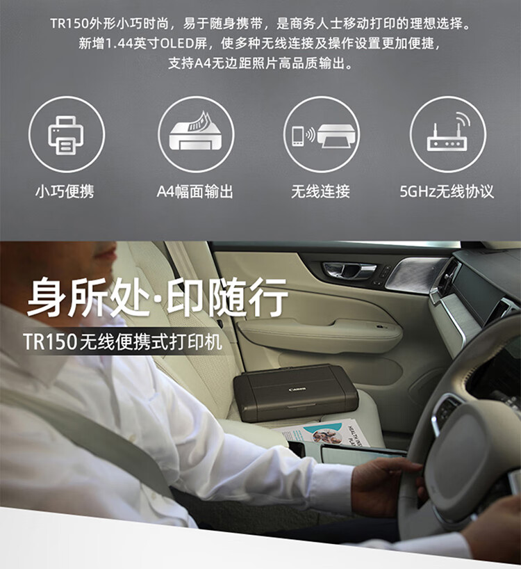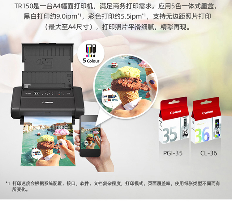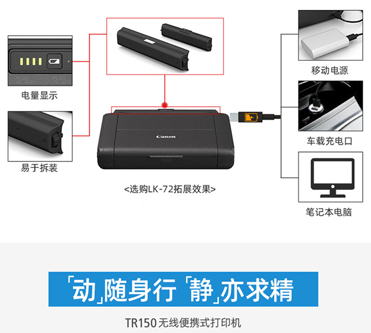 佳能移动便携式打印机TR150/iP110无线直连手机WiFi打印移动车载A4幅面彩色家用打印机办公 TR150 官方标配(标配不含电池请购买套餐) 自营