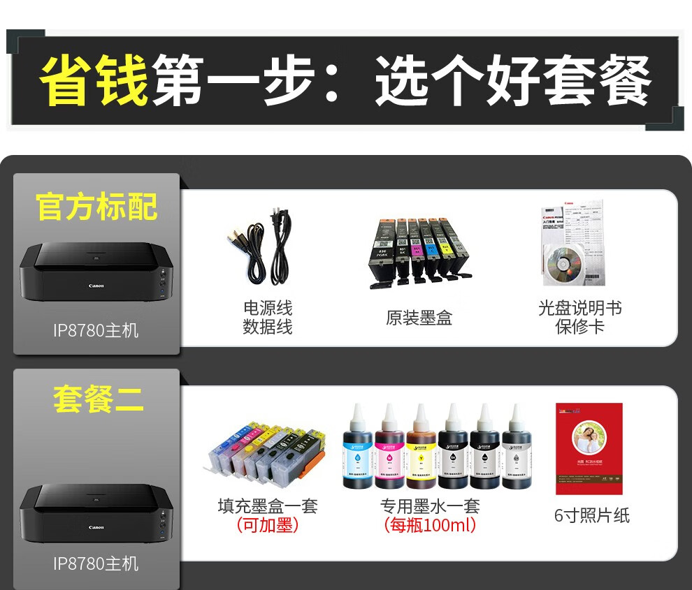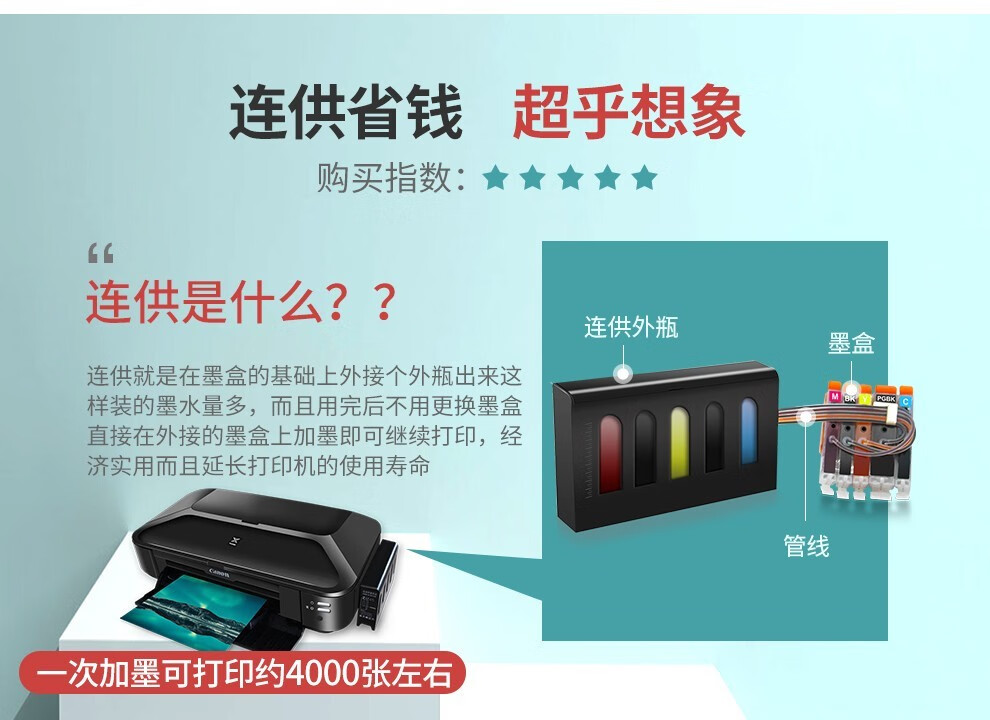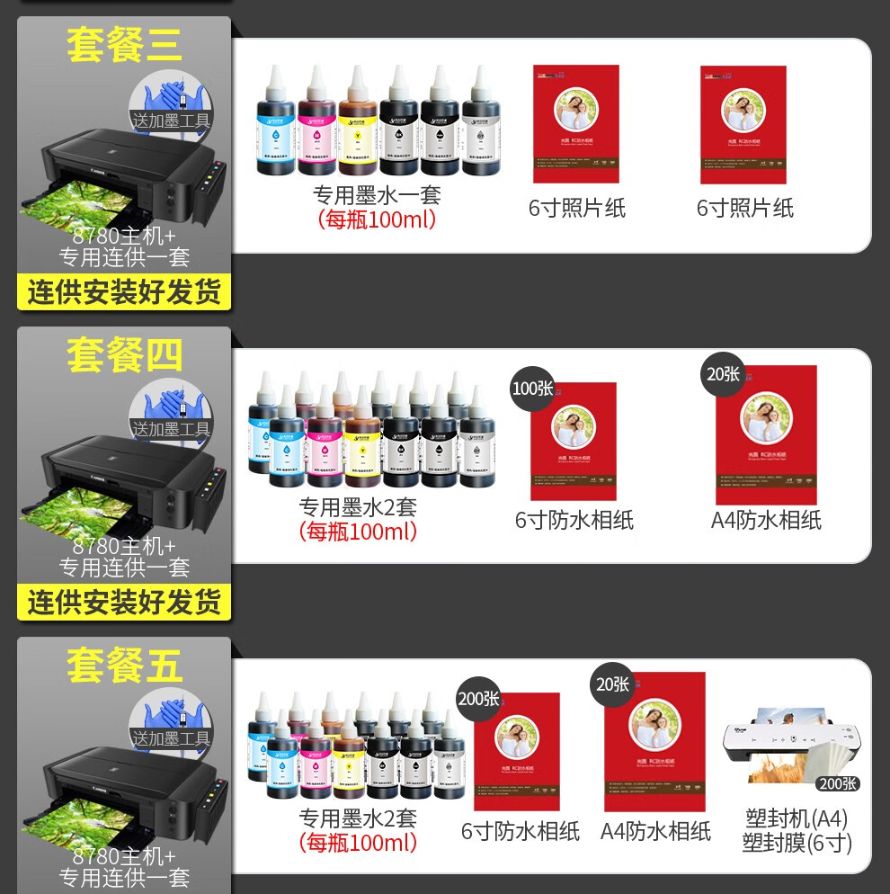 佳能(Canon)ip8780无线a3a4彩色6色照片商用家用文档图纸办公打印机不干胶胶片 套餐三【豪华连供循环加墨含12瓶墨水】 自营