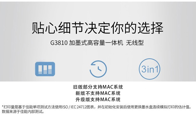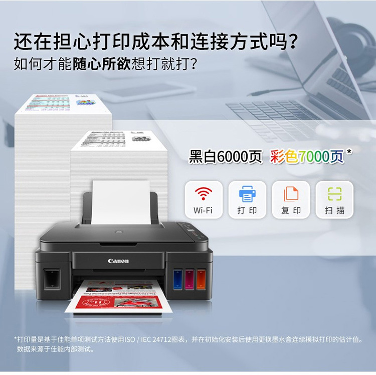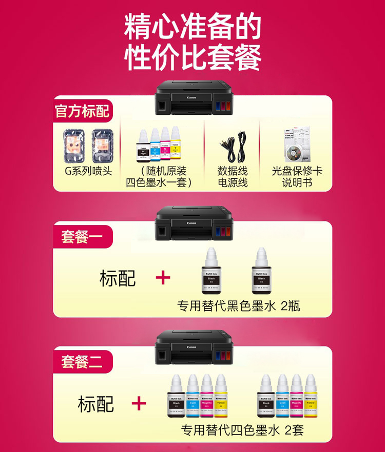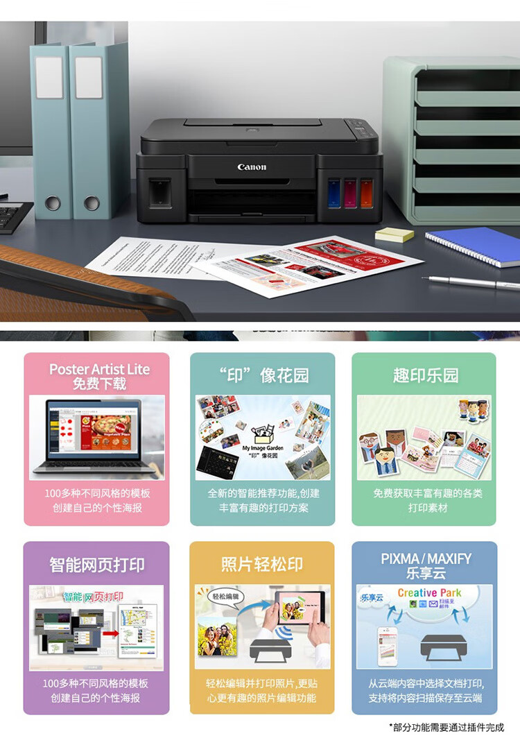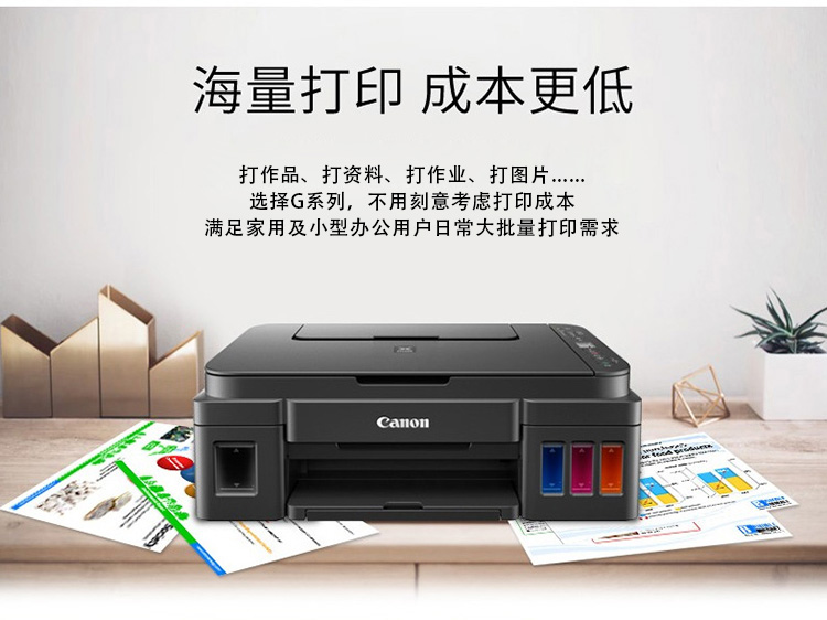 佳能(Canon)G3810家用连供打印机墨仓加墨办公无线手机远程打印扫描复印一体机办公文档A4试卷 G2810 套餐一(官方标配+替代黑色墨水x2瓶) 自营
