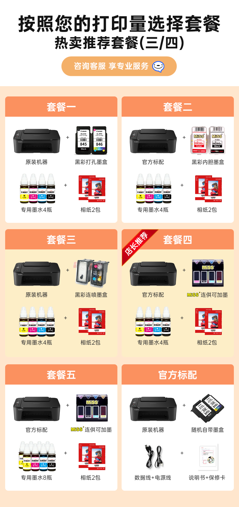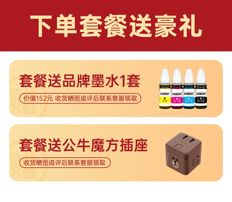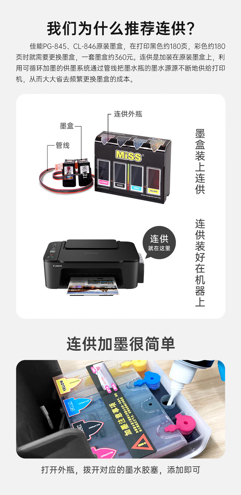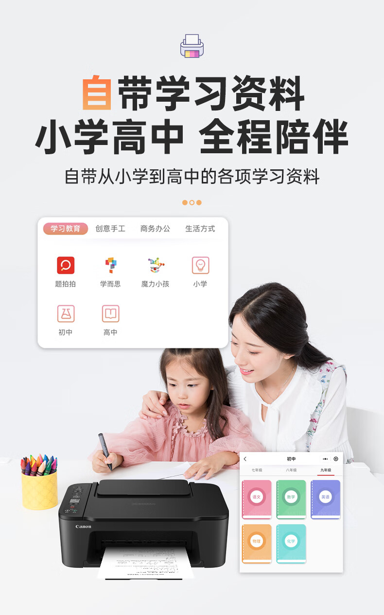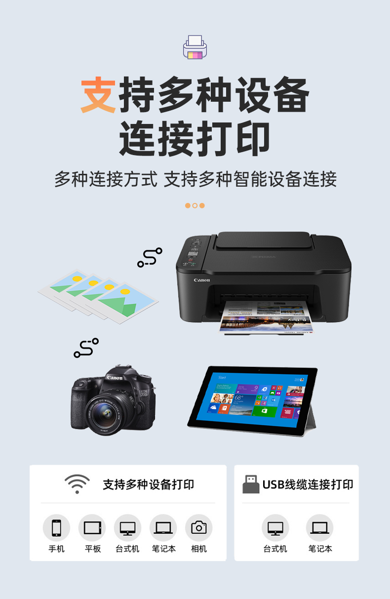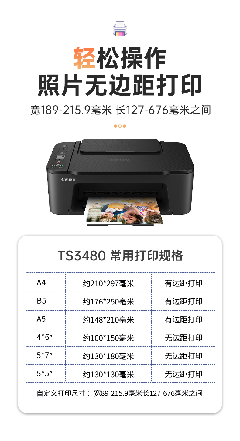 佳能(Canon)TS3480彩色照片喷墨打印机复印机扫描机无线远程家用办公一体机TS3380升级版 黑色TS3480 套餐四【满墨水专利连供+4瓶墨水+大礼包】推荐 自营