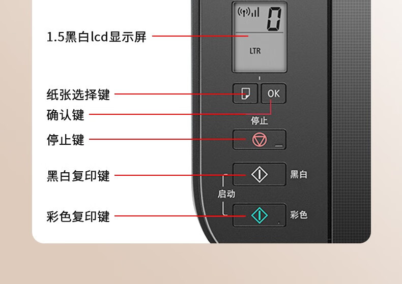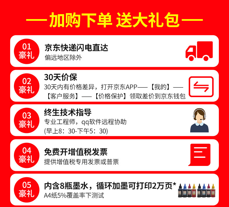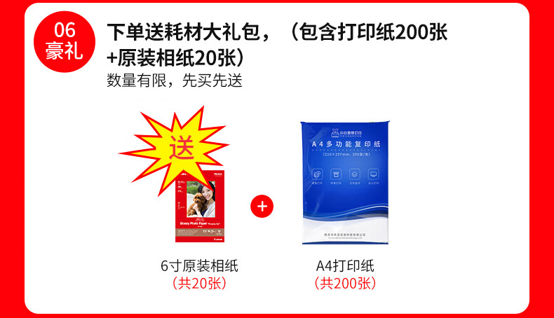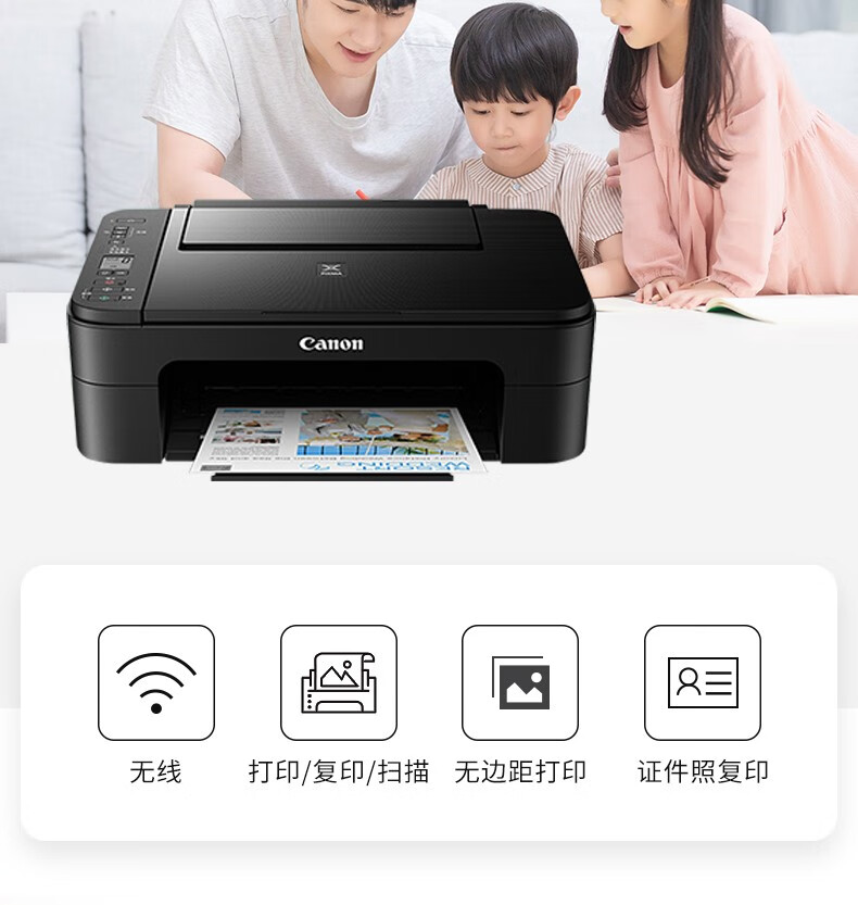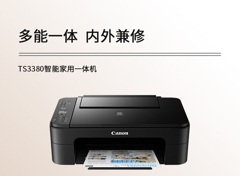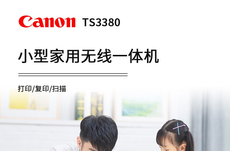 佳能(Canon)TS3380喷墨打印机家用彩色照片打印复印扫描无线一体机 红色 商家标配(原装机器+大容量内胆加墨+8瓶墨水) 自营