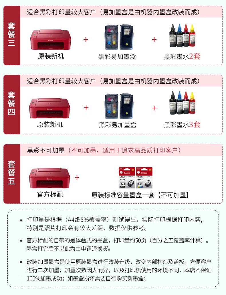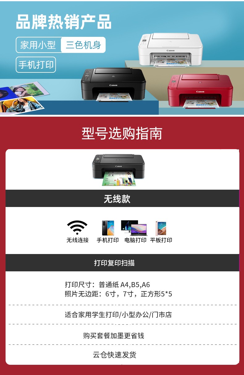 佳能ts3380彩色喷墨照片打印机家用打印复印扫描一体机迷你小型学生作业a4手机无线wifi连接办公 黑色 无线版无边距【手机WiFi+电脑】 官方标配(随机墨盒·印量小·不可加墨) 自营
