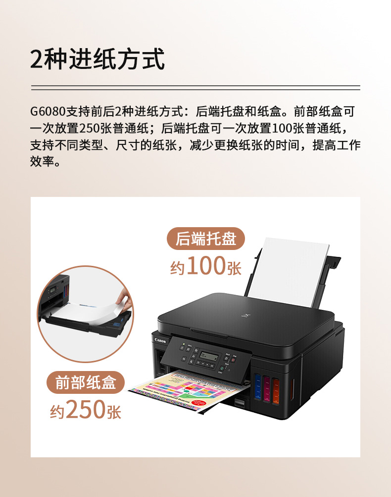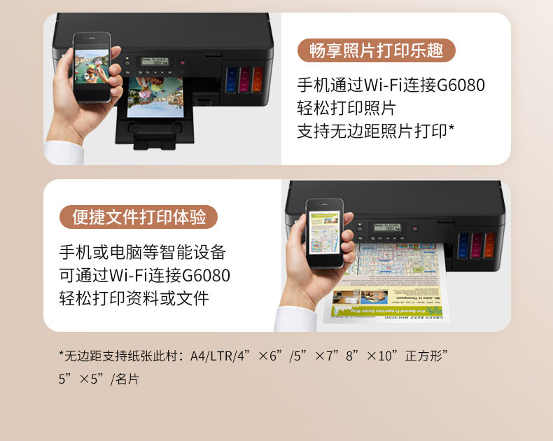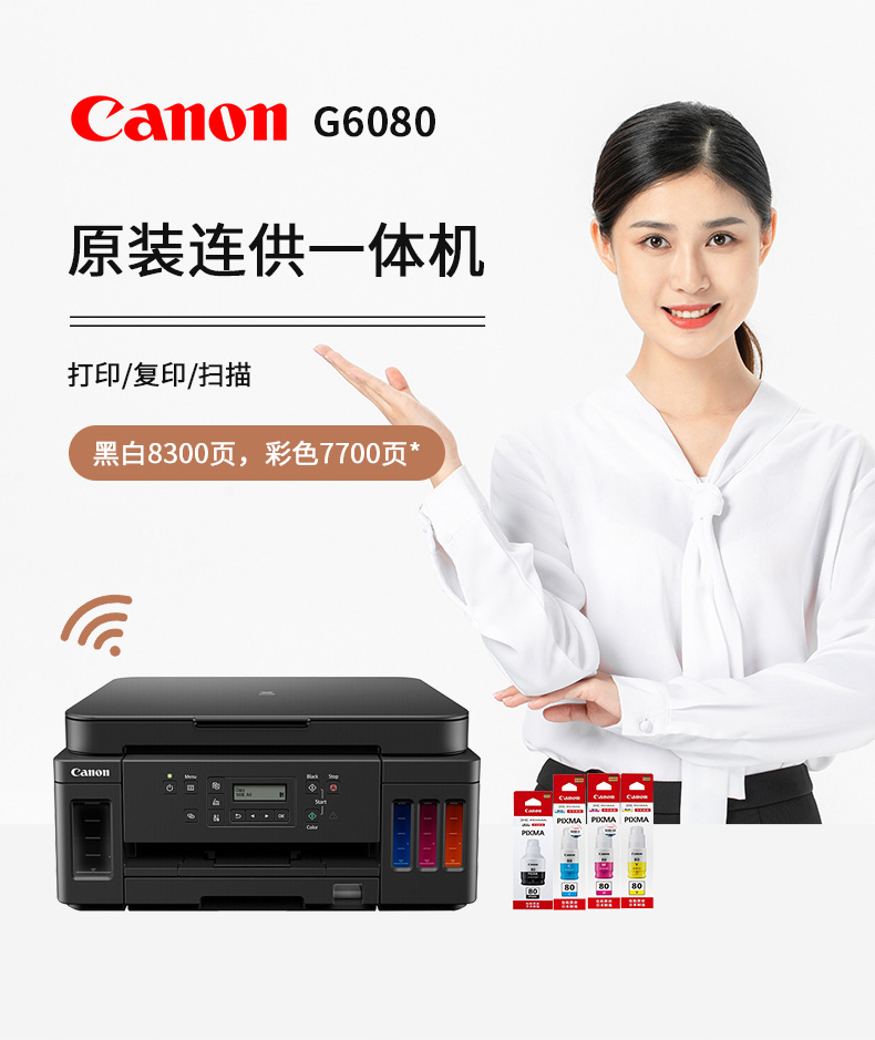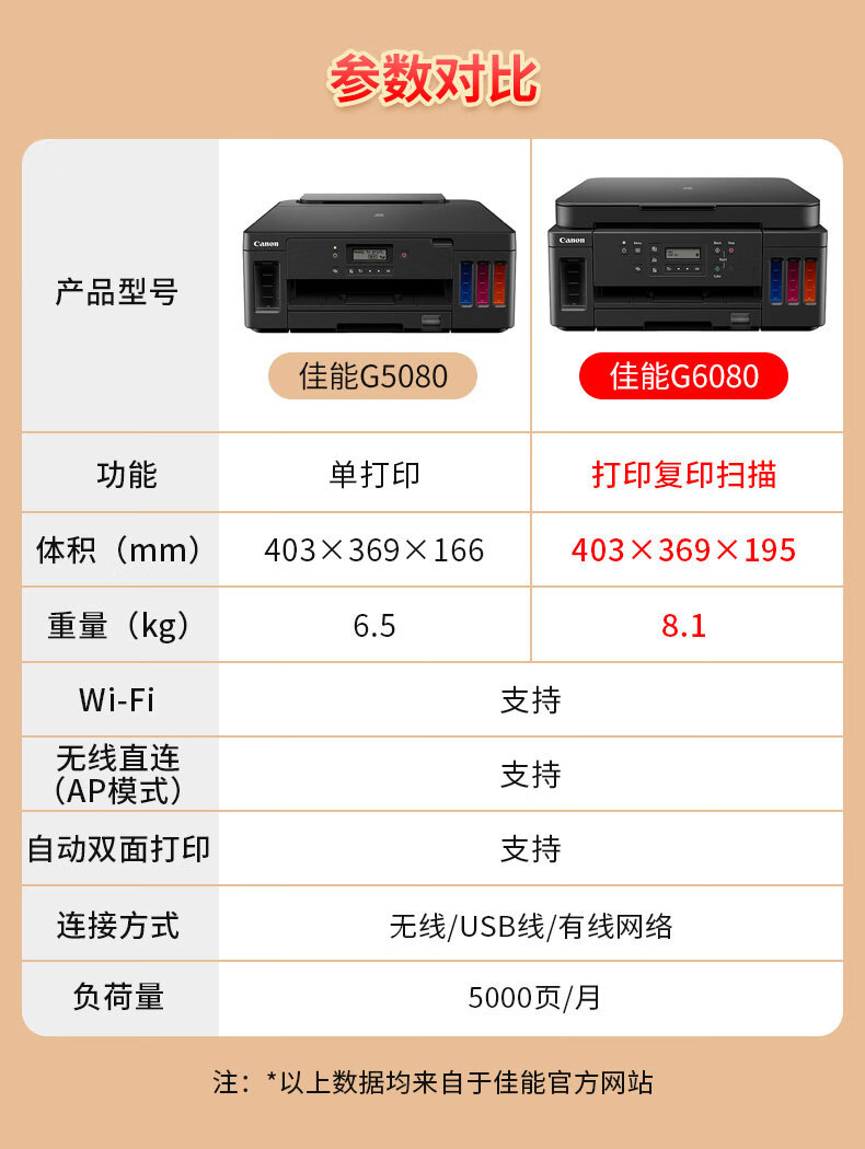 佳能打印机G6080/G5080大容量墨仓连供无线自动双面打印机照片文档商用家用办公复印扫描一体机 G5080(自动双面打印/单打印) 自营