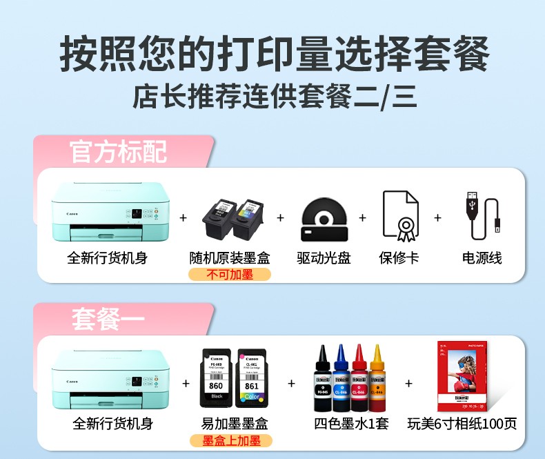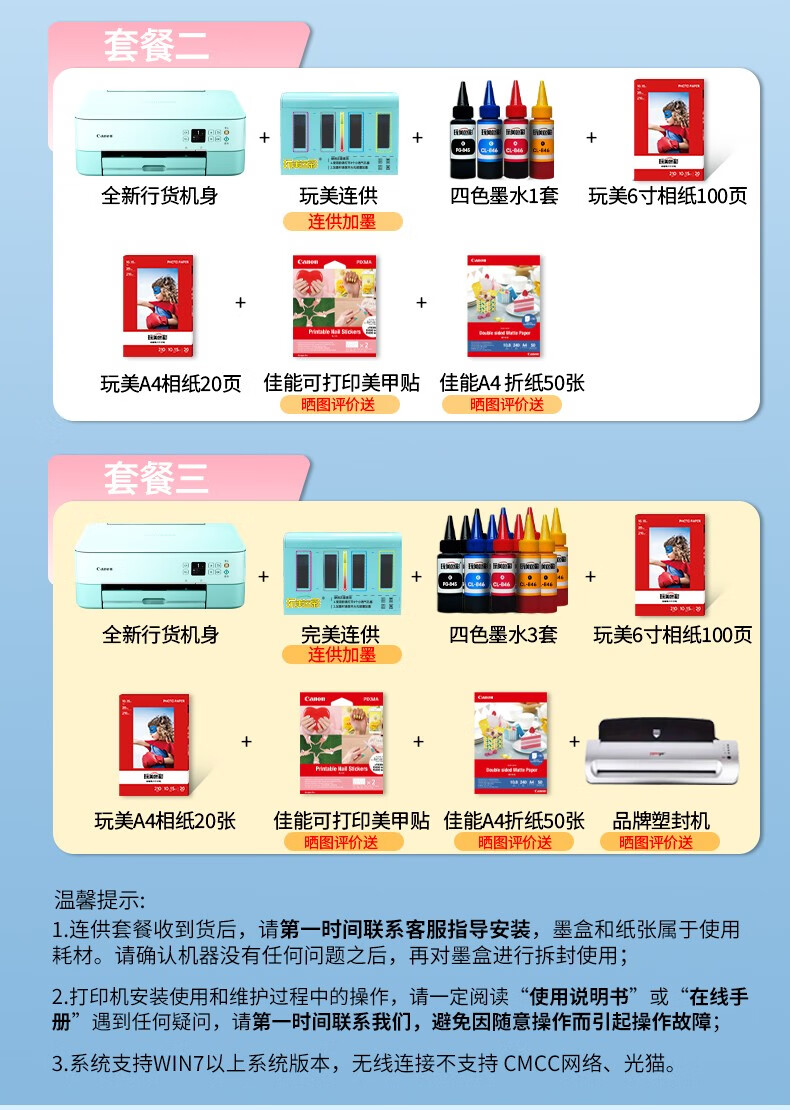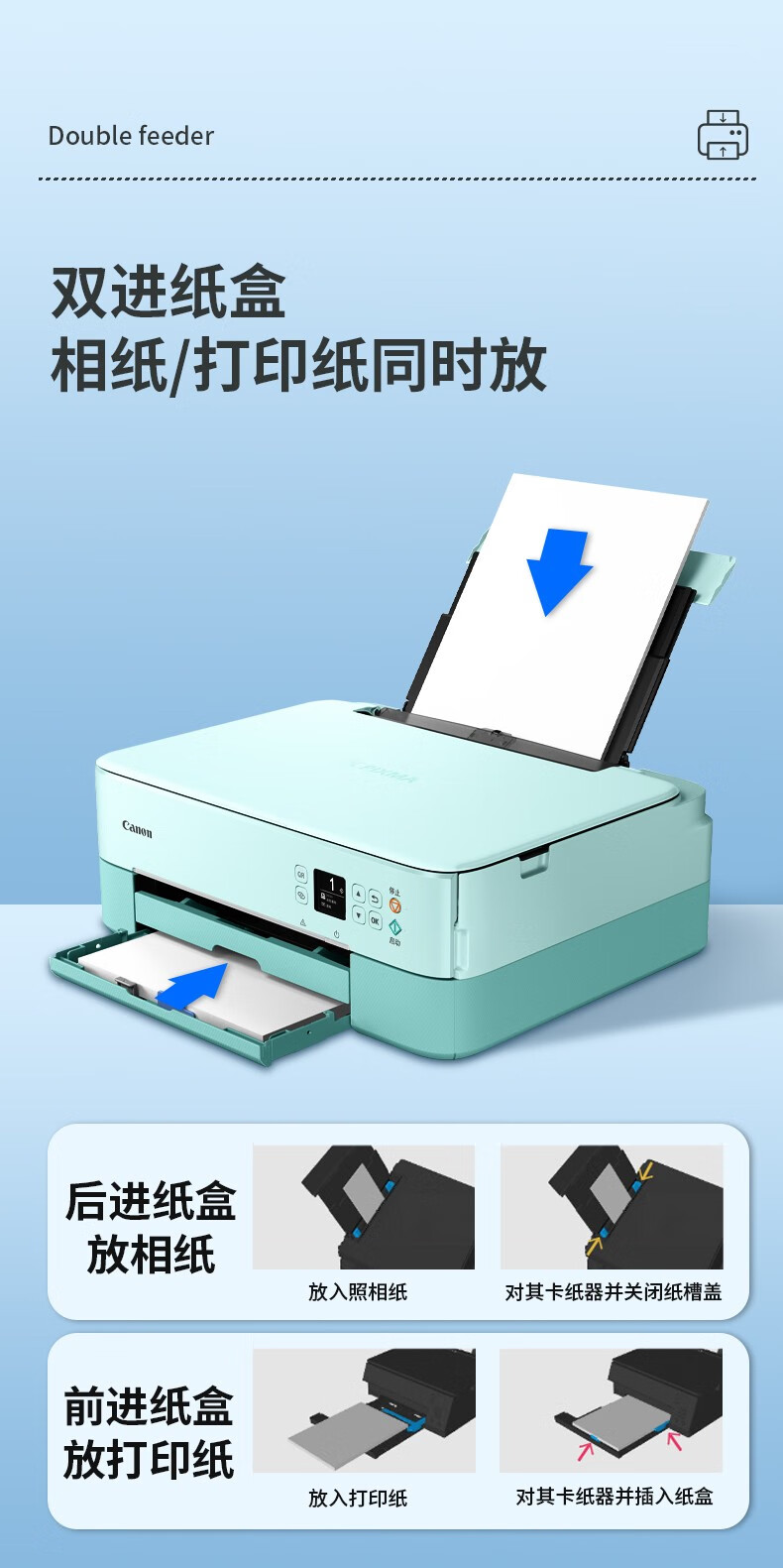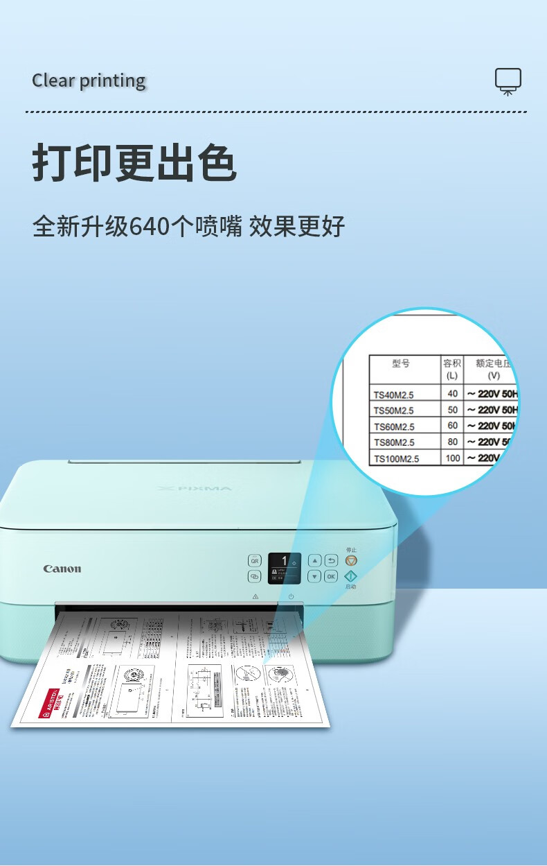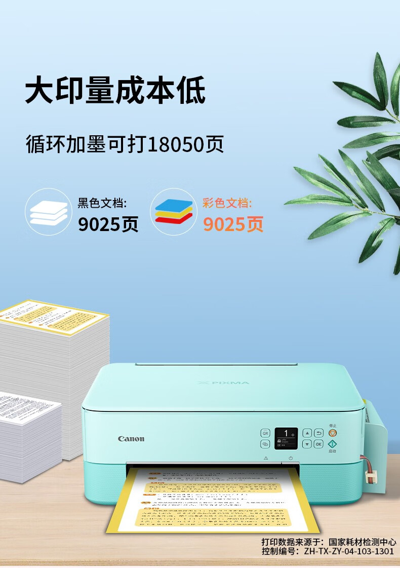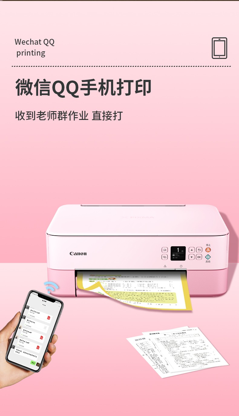 佳能TS5380打印机家用小型连供无线喷墨打印复印扫描多功能一体机彩色双面办公手机照片相片 TS5380马卡龙粉色 套餐2(家用套餐):升级连供+1套墨水 自营