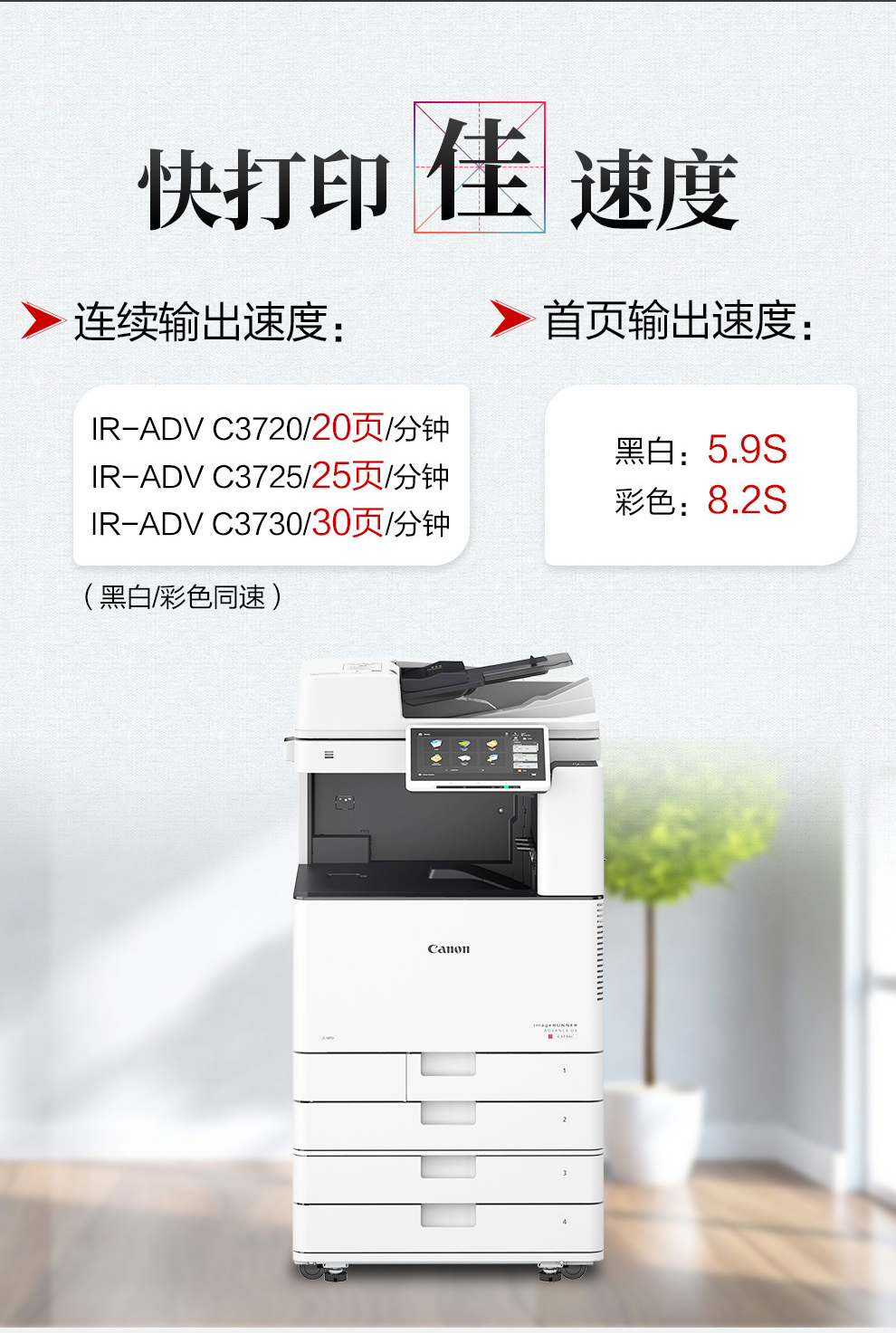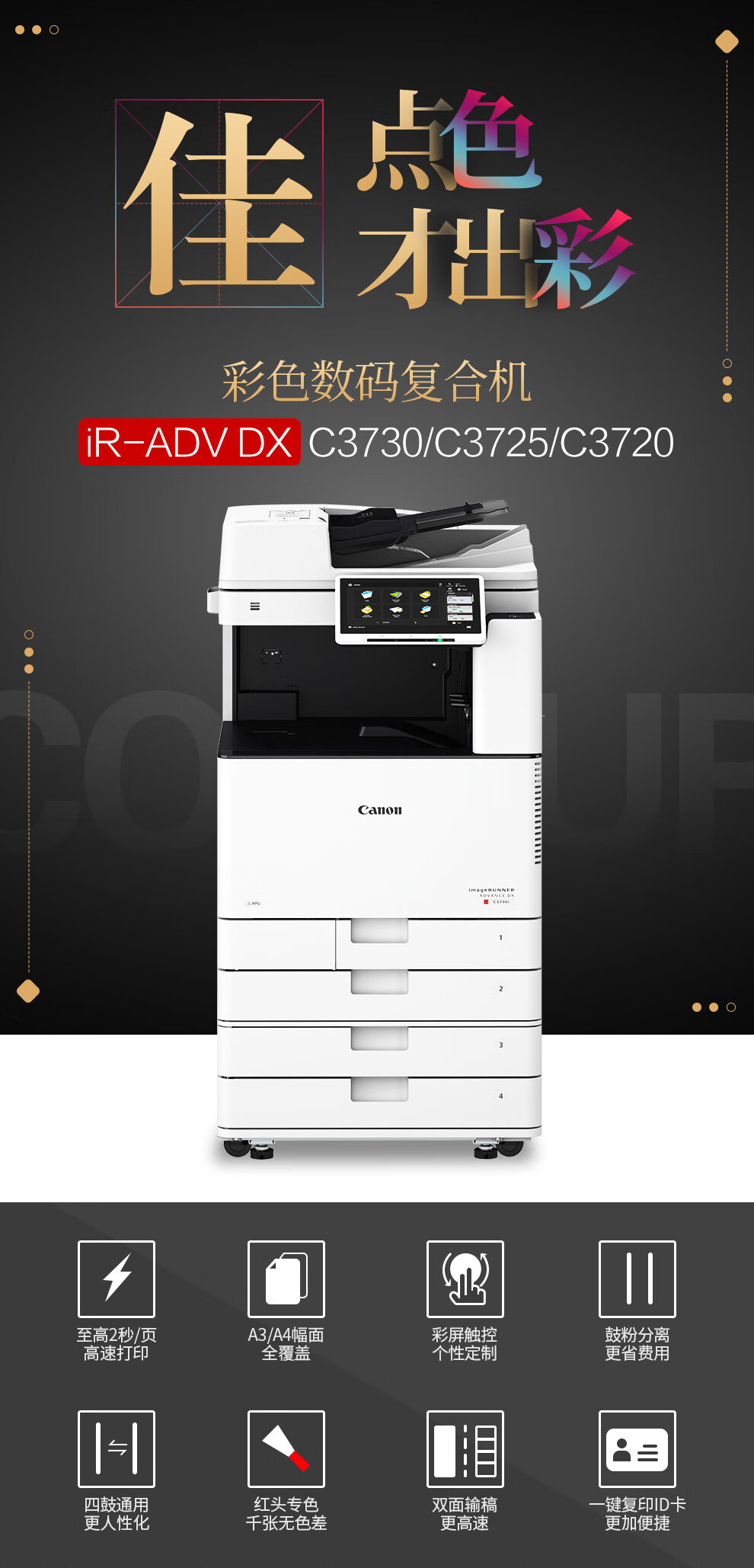 佳能 A3彩色激光复合机iR-ADV DX C3720轻办公复印机打印机大型办公一体机(自动输稿器+四纸盒+鞍式装订器) 自营