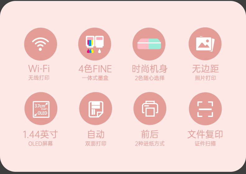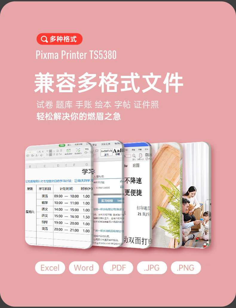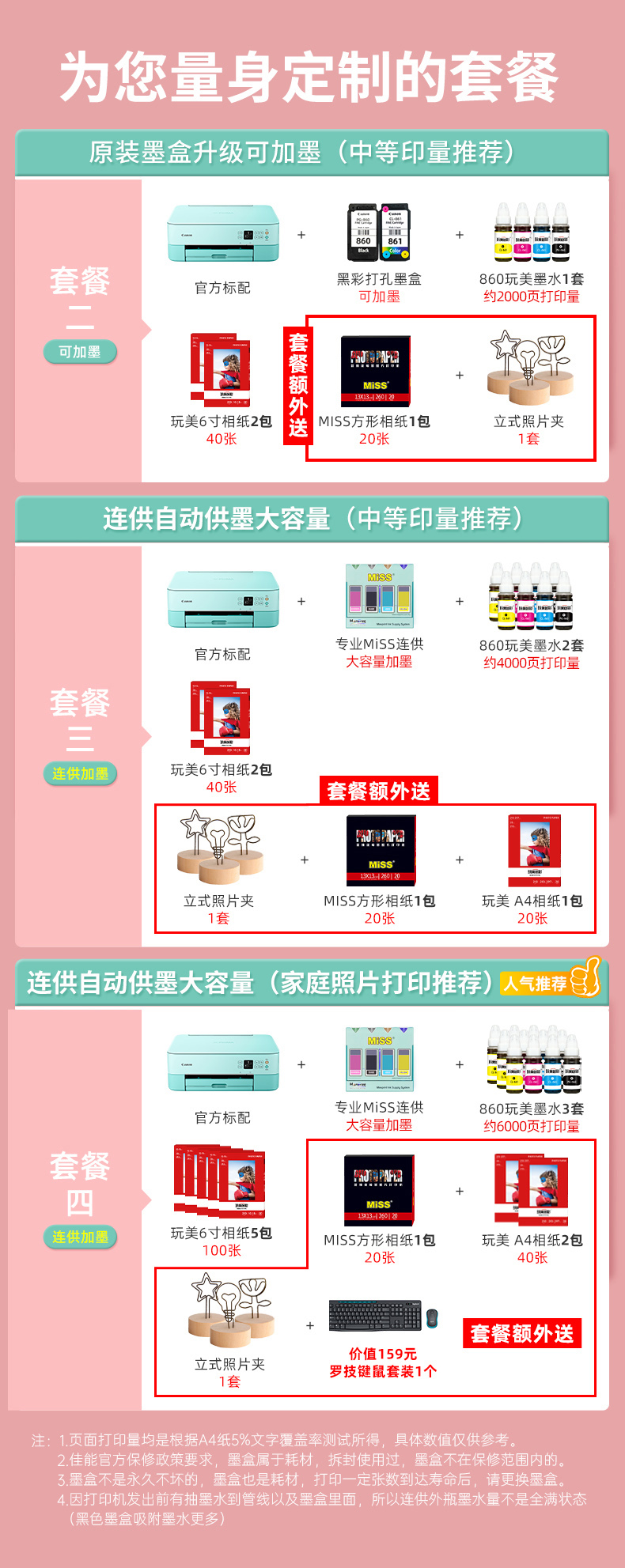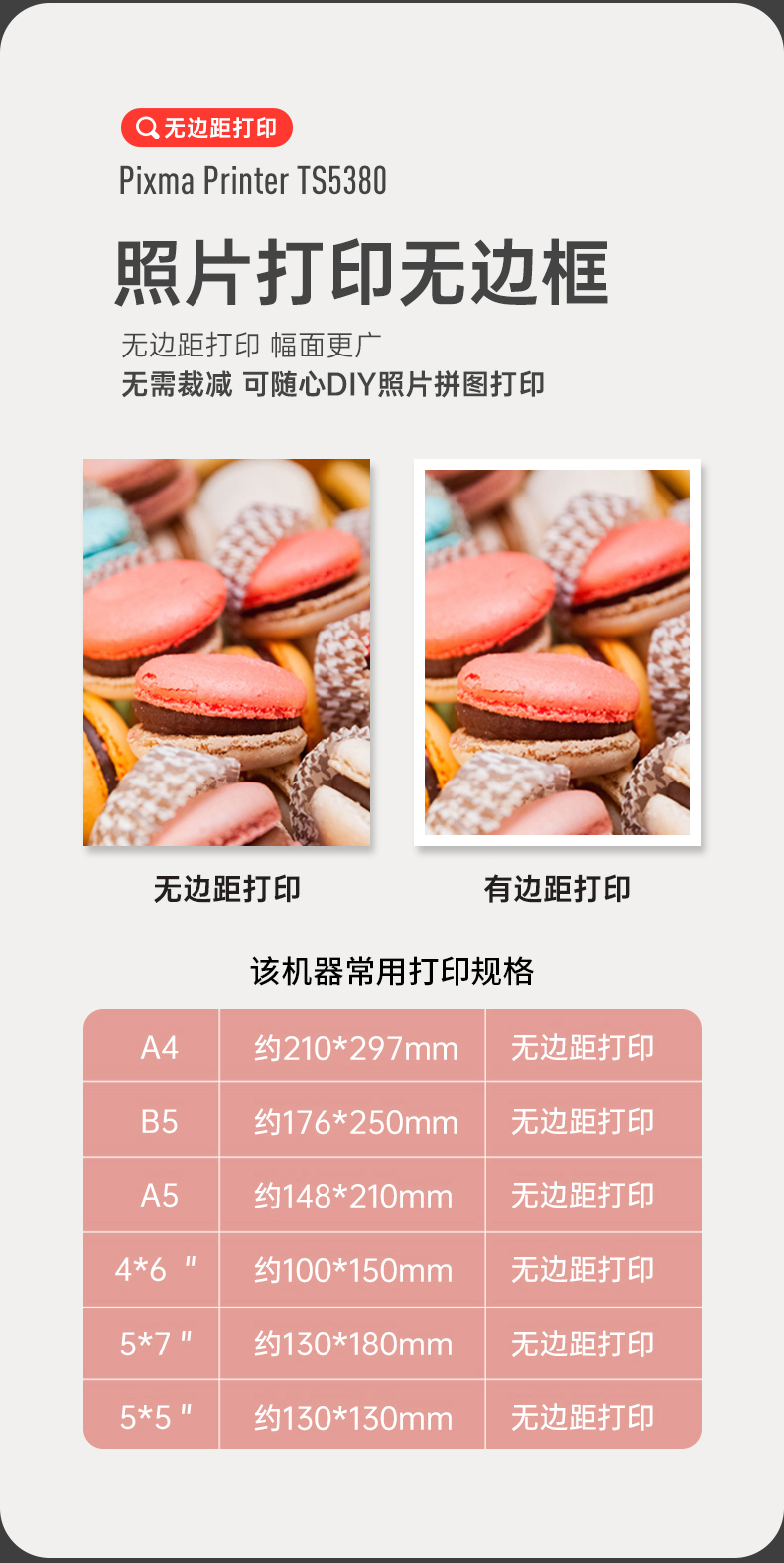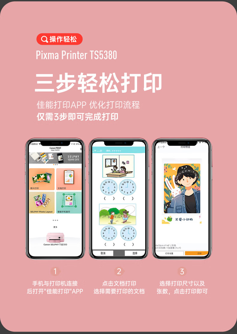 佳能TS5380彩色照片打印机喷墨一体机家用手机办公打印复印扫描无线Wifi连接 TS5380粉红色 套餐三【MISS专业大容量连供+8瓶墨水】 自营