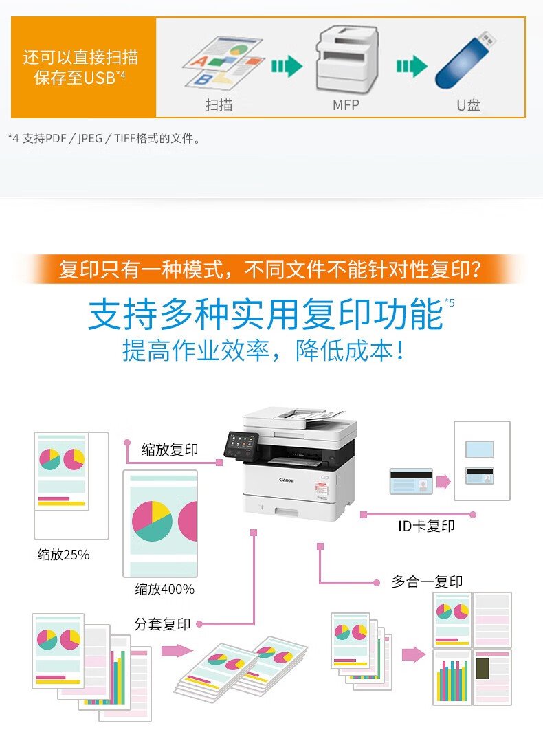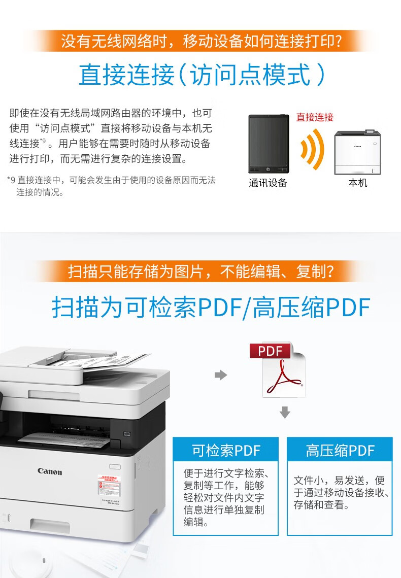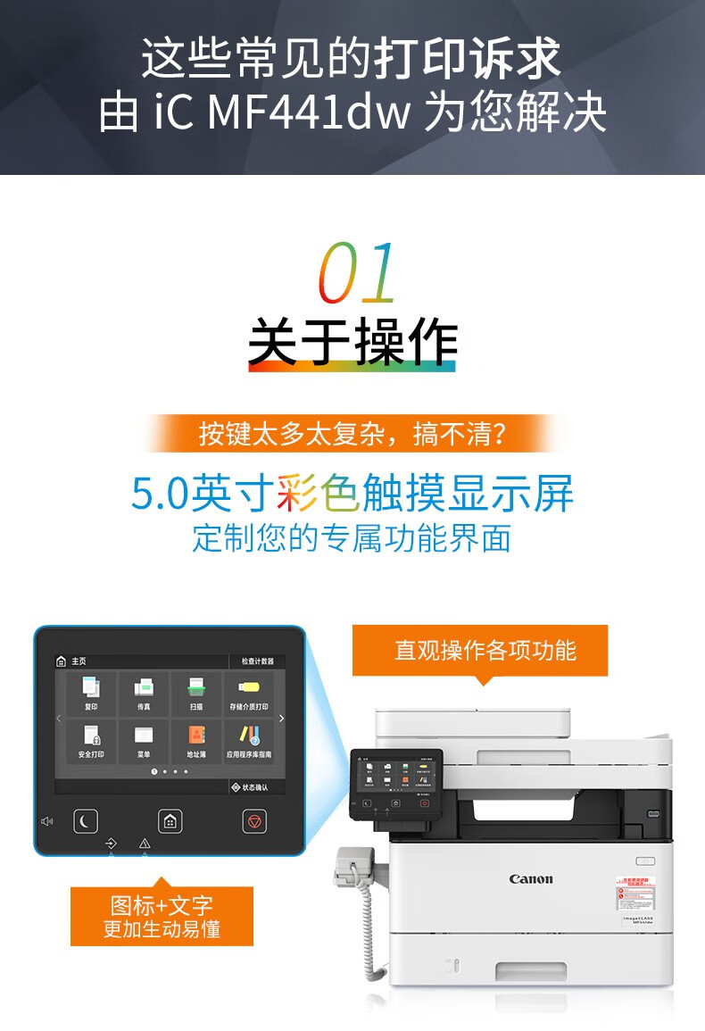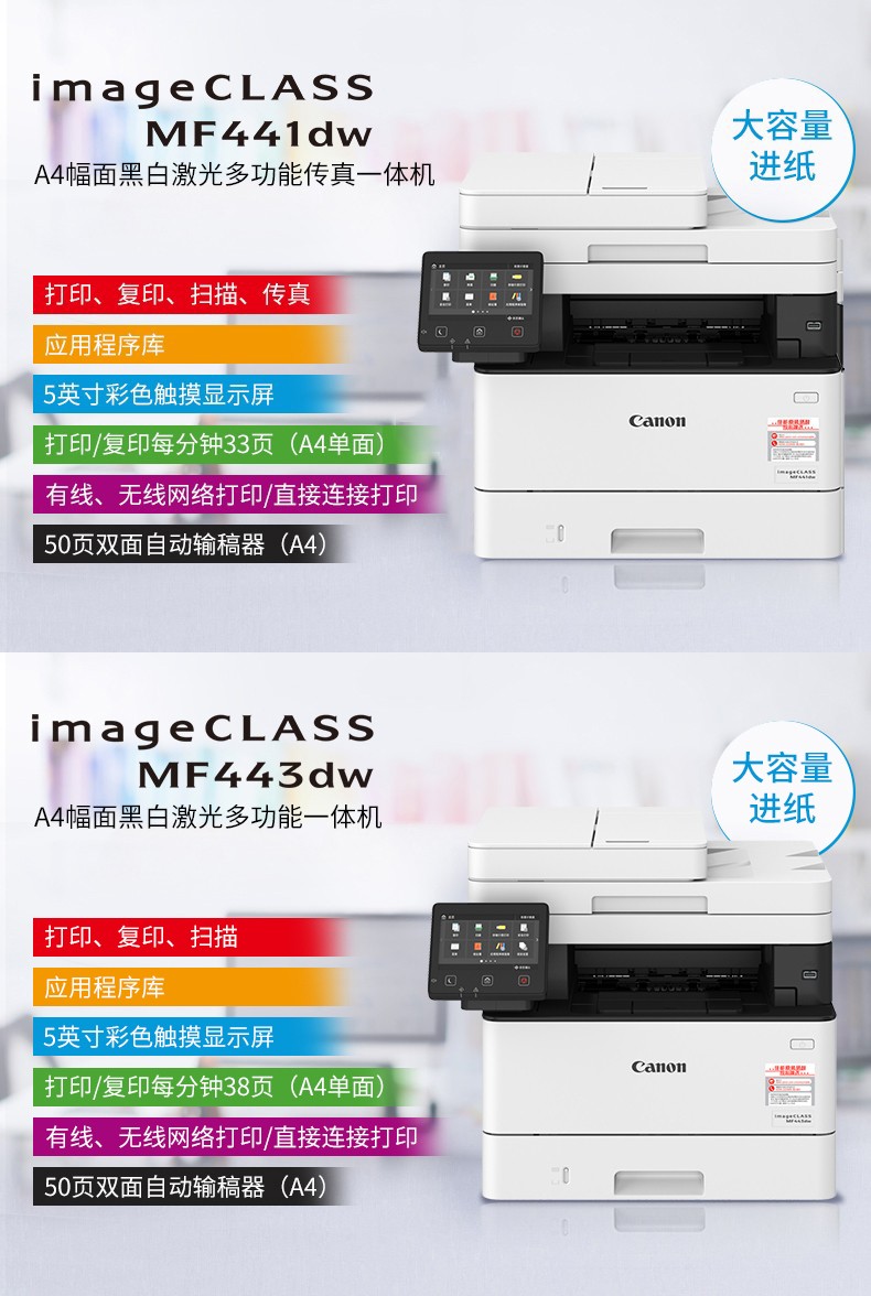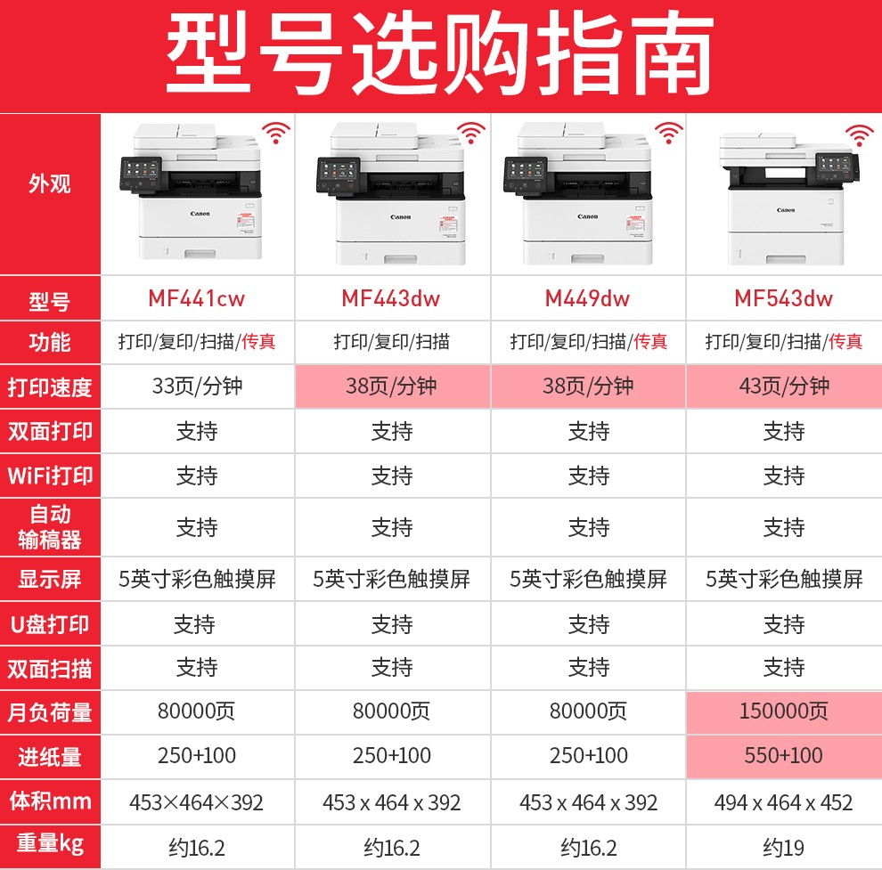 佳能(canon)MF441/443/449DW多功能一体机 黑白激光自动双面打印复印扫描传真一体机 MF441DW【U盘/双面打印/33页/分钟)】 自营