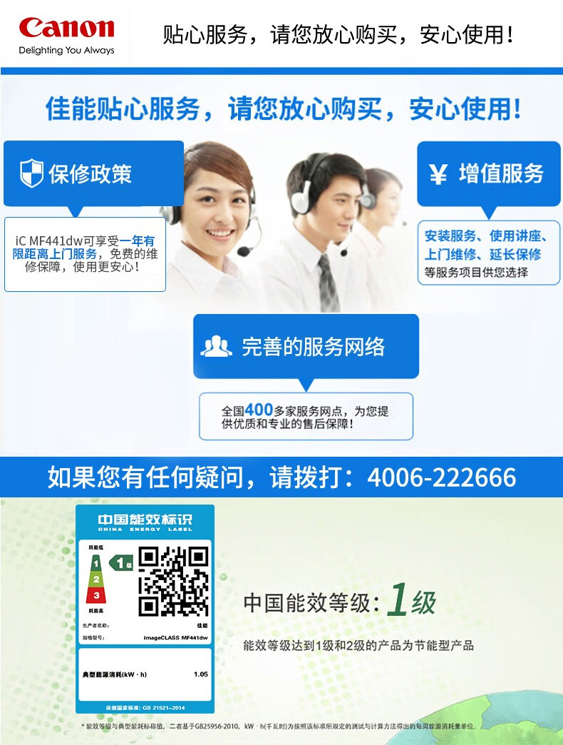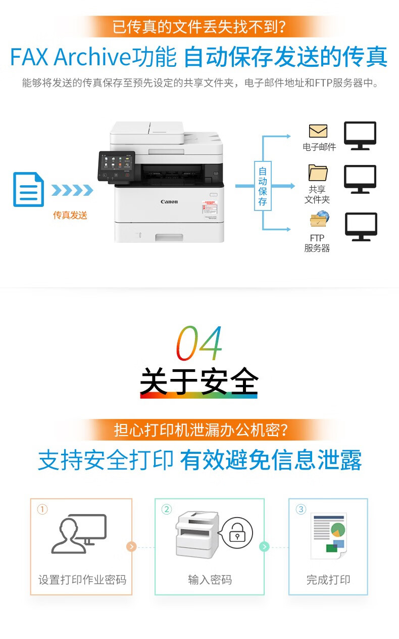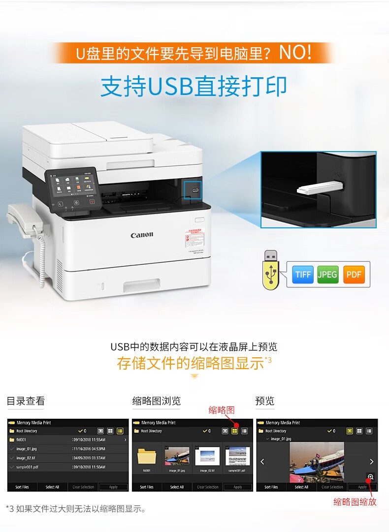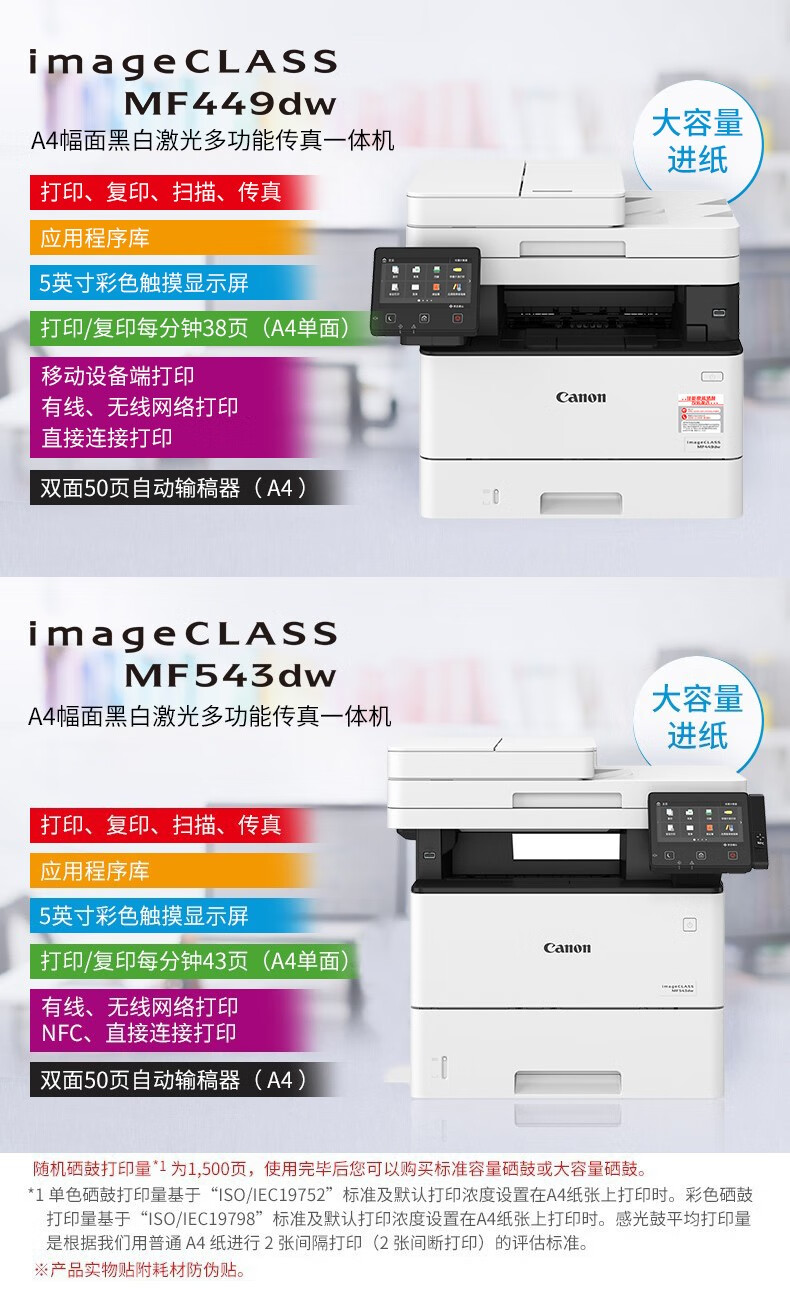 佳能(canon)MF441/443/449DW多功能一体机 黑白激光自动双面打印复印扫描传真一体机 MF441DW【U盘/双面打印/33页/分钟)】 自营