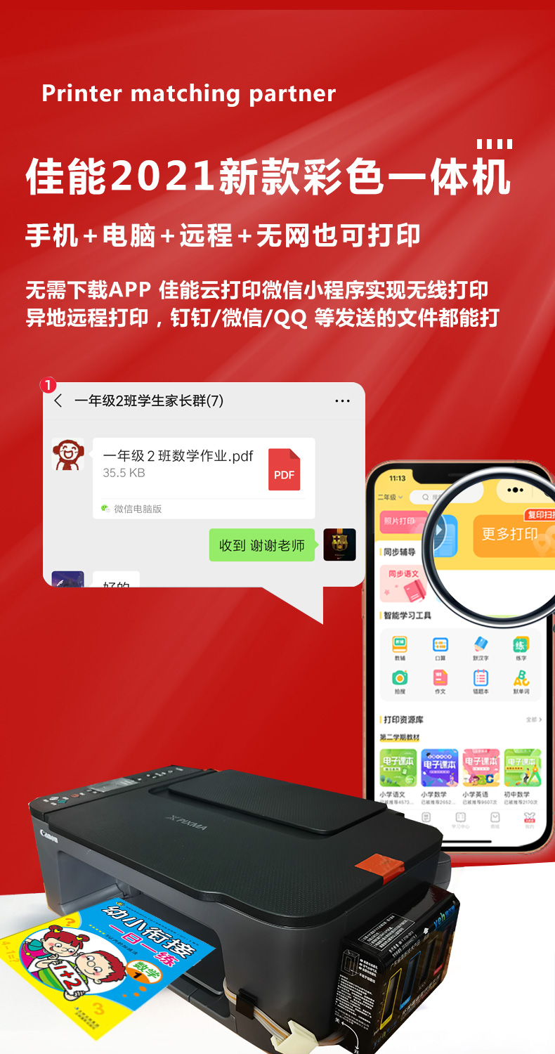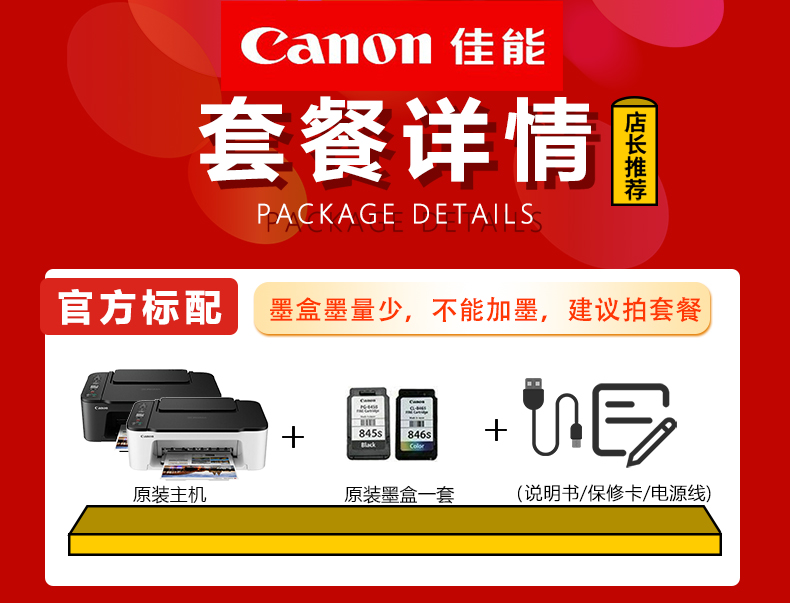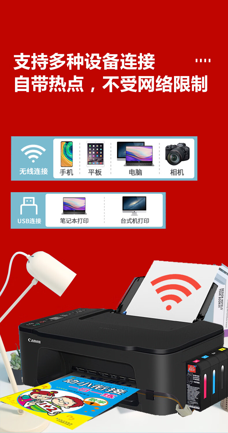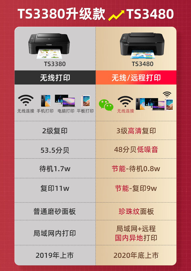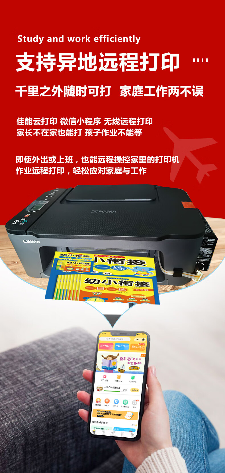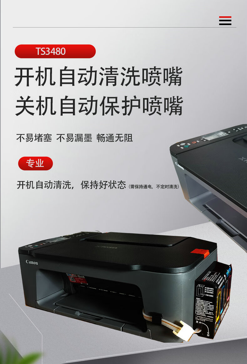 佳能TS3480彩色喷墨打印机复印机扫描机多功能一体机手机无线远程微信家用办公作业小型3380升级版 TS3480黑色标配{套餐可加墨} - 自营