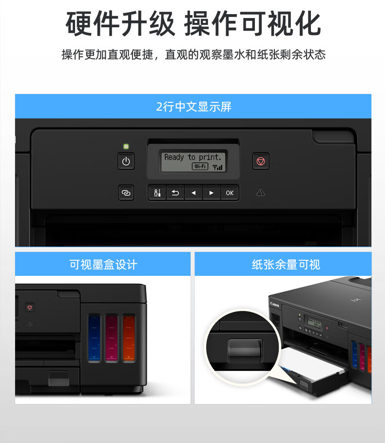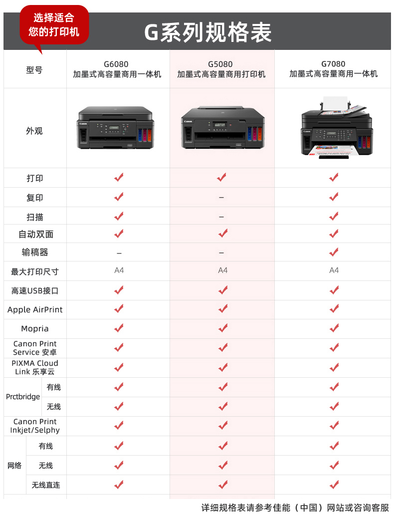 佳能G5080/G6080/7080彩色喷墨打印机家用小型办公室商务商用无线wifi自动双面可连手机 G5080 仅打印功能(单打印) 官方标配 自营