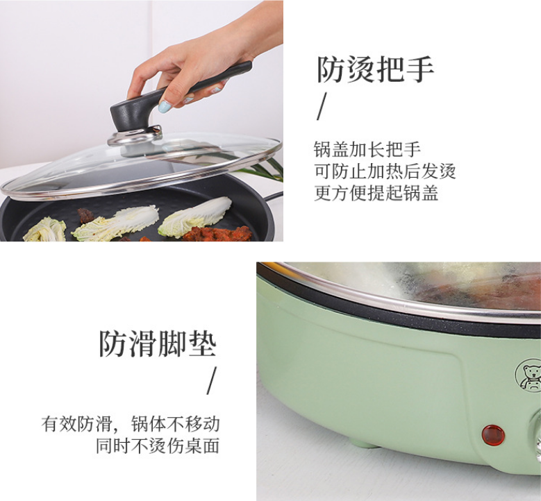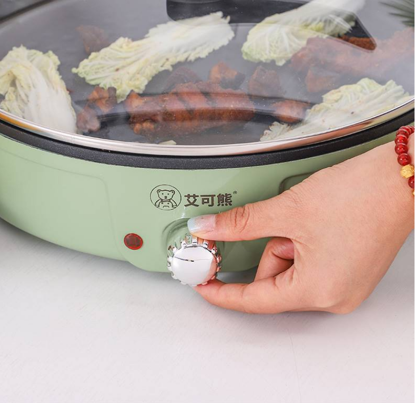艾可熊艾可熊涮烤一体电煎锅电烤锅多功能电火锅煮家用无油烟锅慧 绿、煎烤锅 自营