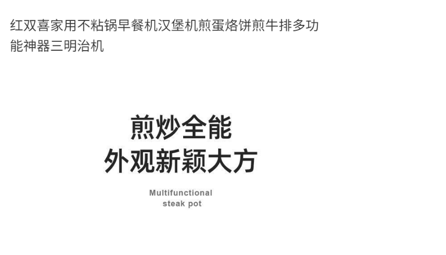 商品名称:鸡蛋汉堡煎锅 蛋堡锅水煎包锅家用鸡蛋卷锅 红双喜家用不粘锅早餐机汉堡机煎蛋烙饼煎牛排多功能神器三明治 牛排鸡蛋锅 商品品毛重:1.0kg功能:不粘