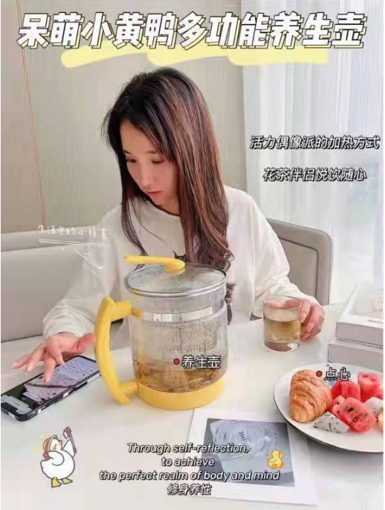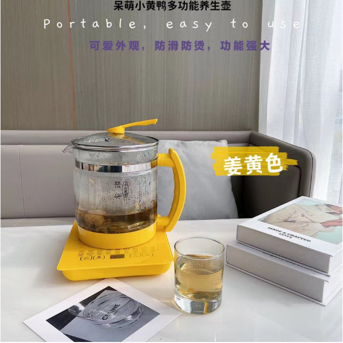 商品名称:小黄鸭养生壶小黄鸭多功能分体养生壶家用全自动玻璃花茶壶1.8L自动保温热水壶 小黄鸭分体养生壶 商品毛重:1.0kg 类别:多功能电子家居 题材:其他适用 季节:夏季 风格:中国风 适用场景:生日