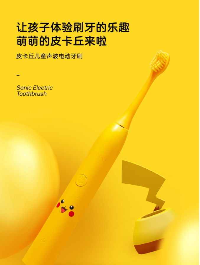 商品名称:ApiYoo宝可梦电动牙刷 商品毛重:0.58kg 商品产地:中国大陆 刷头工艺:无铜片植毛技术特色:IP定制款 噪音:46-65dB 类型:声波震动牙刷 续航时间:15-45天 充电方式:感应 充电频率:33001-38000Hz 适用人群:礼品人群,成人 清洁类型:亮白,敏感,抛光 防水等级:IPX7 强度档数:三档以上