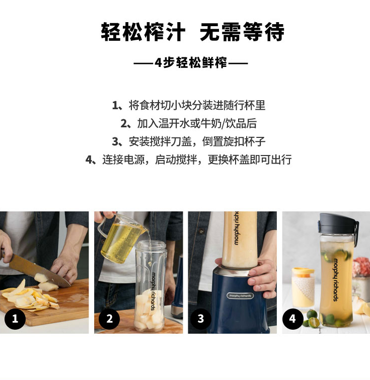摩飞(Morphyrichards)家用榨汁机原汁机便携式果汁机 迷你料理杯 搅拌机小型MR9500 自营