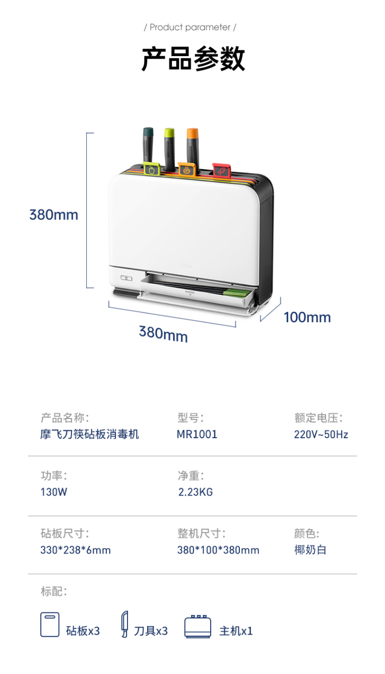 摩飞电器(Morphyrichards)消毒刀架砧板刀具紫外线消毒机烘干器菜板分类厨具MR1001 自营