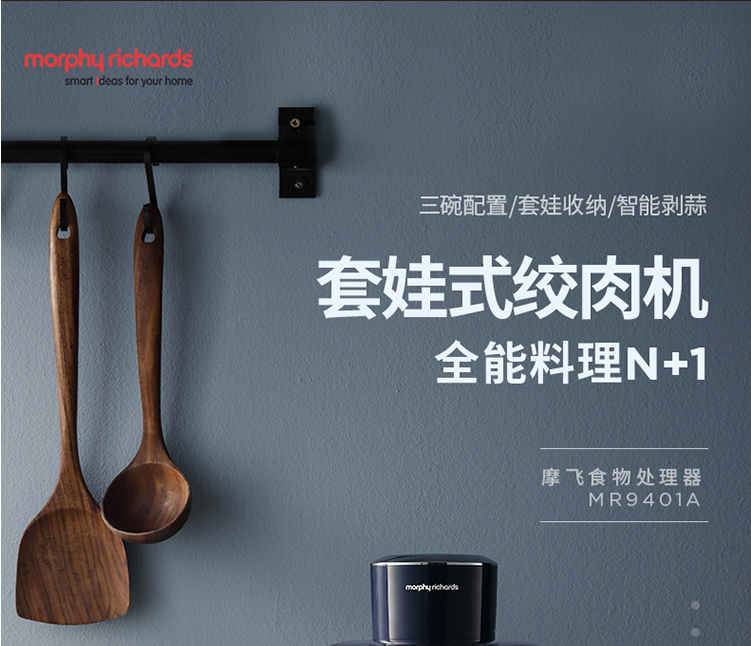 摩飞电器(Morphyrichards)套娃式绞肉机家用不锈钢分类电动多功能绞馅机辅食机料理机打肉馅MR9401A 自营