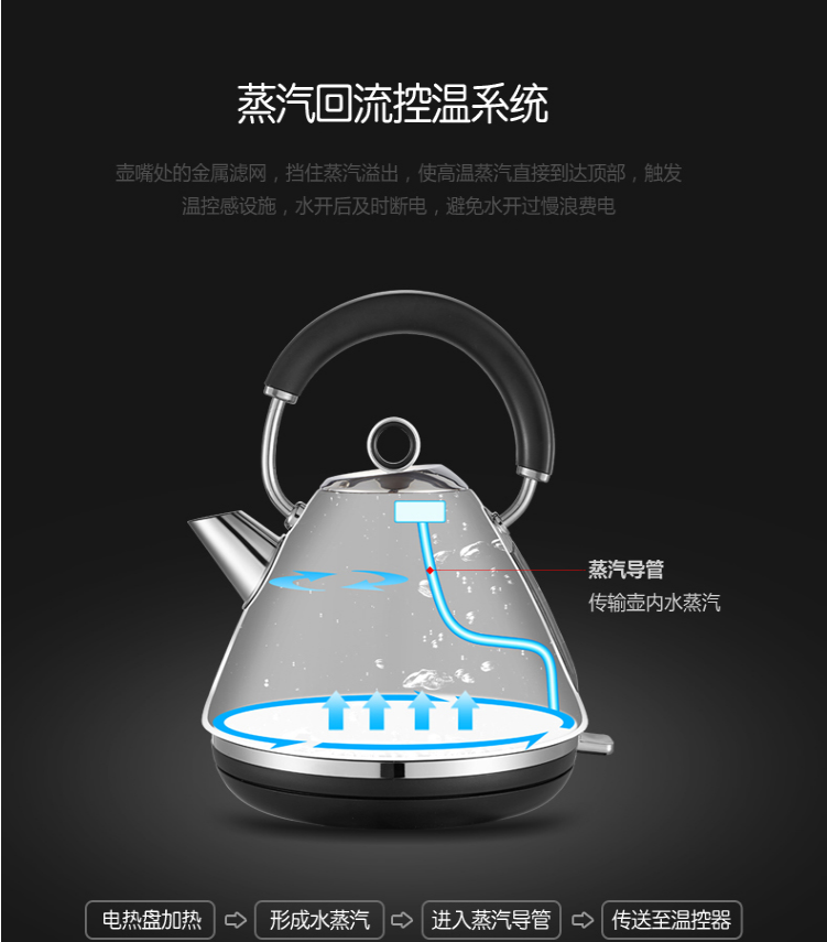 品名称:摩飞电器MR7076A 商品毛重:2.31kg商品产地:中国大陆 类型:电热水壶 材质:单层不锈钢