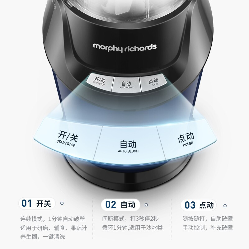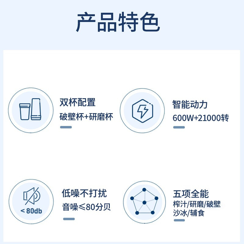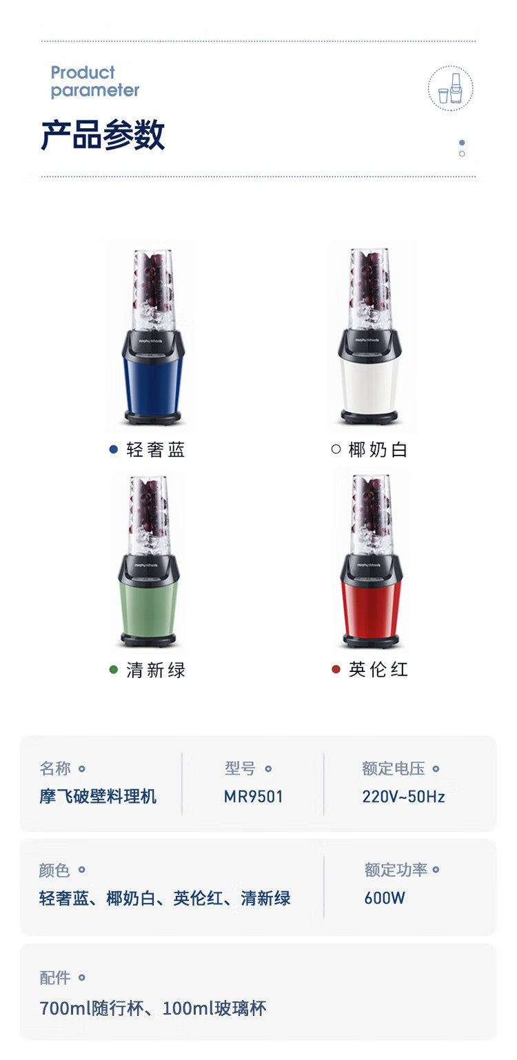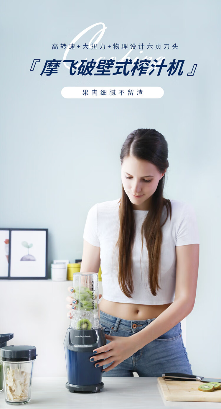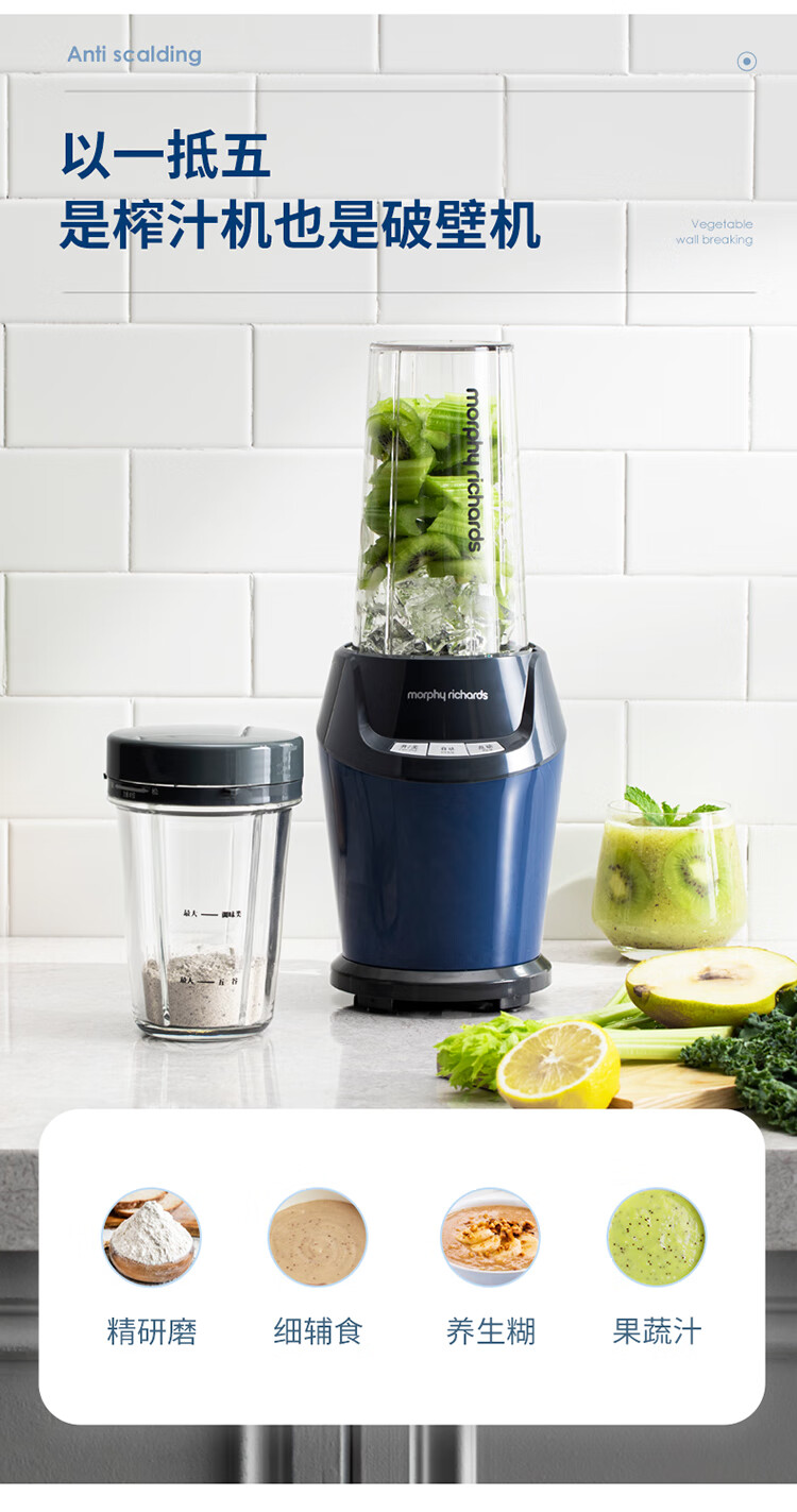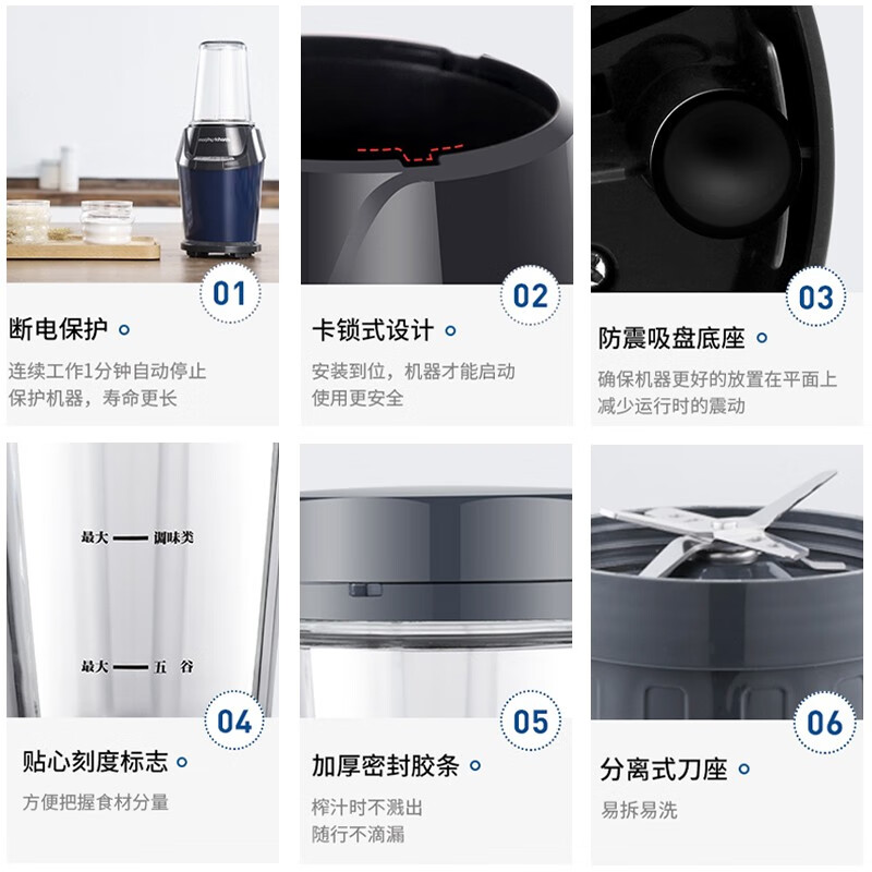 摩飞破壁机家用多功能料理机绞肉机小型水果榨汁机婴儿辅食搅拌器全自动低音果汁机MR9501 轻奢蓝(搅拌+榨汁机+研磨+破壁) 自营
