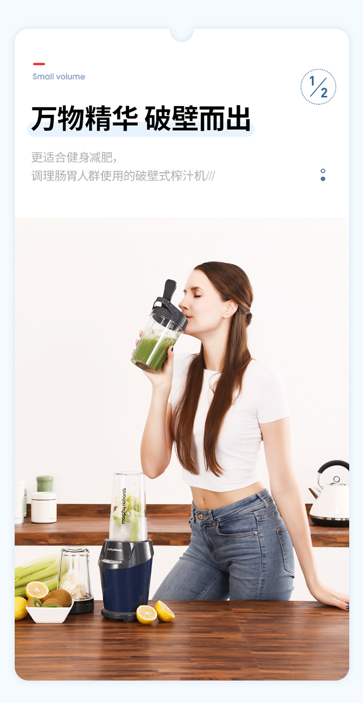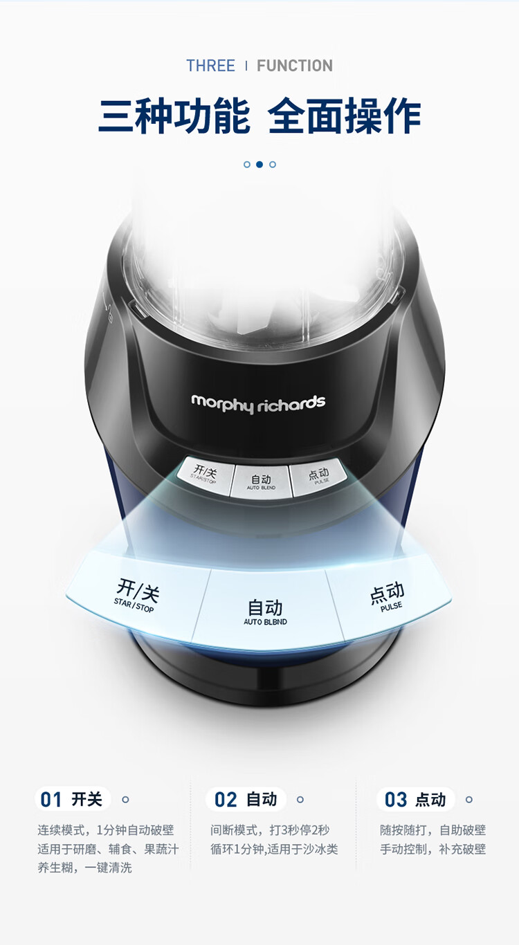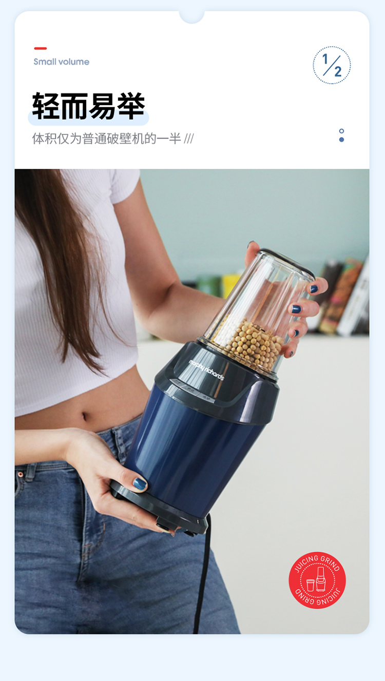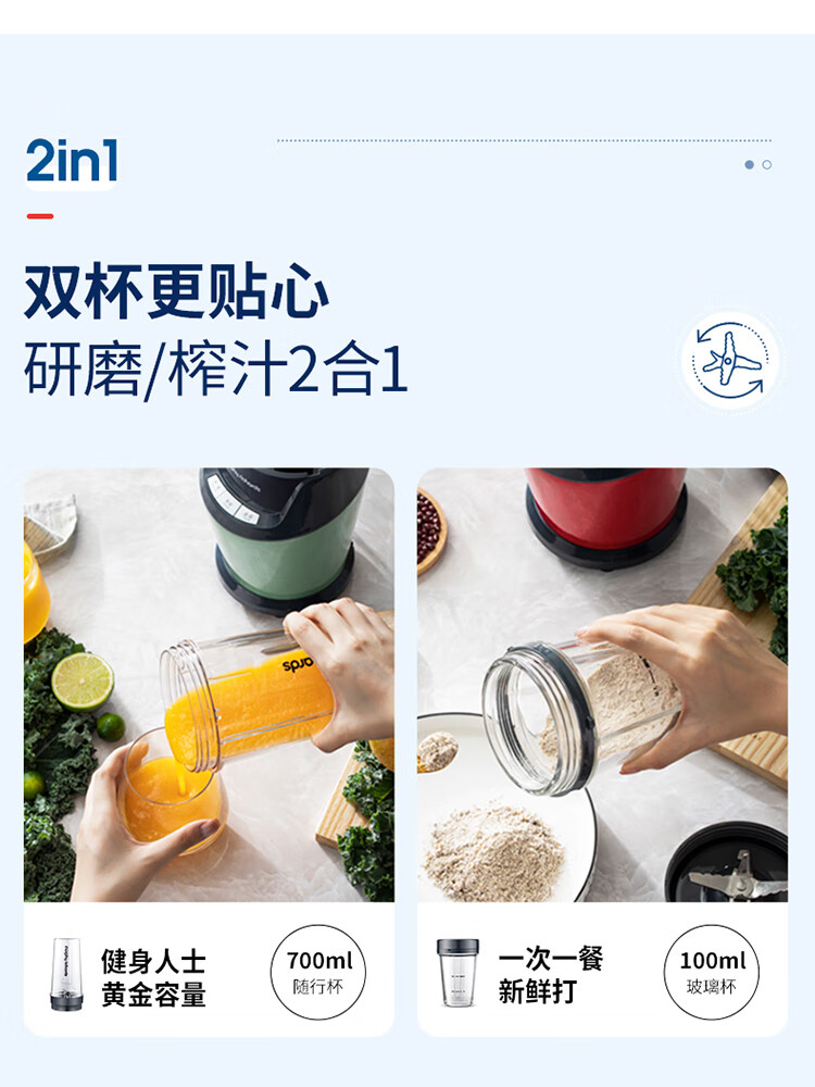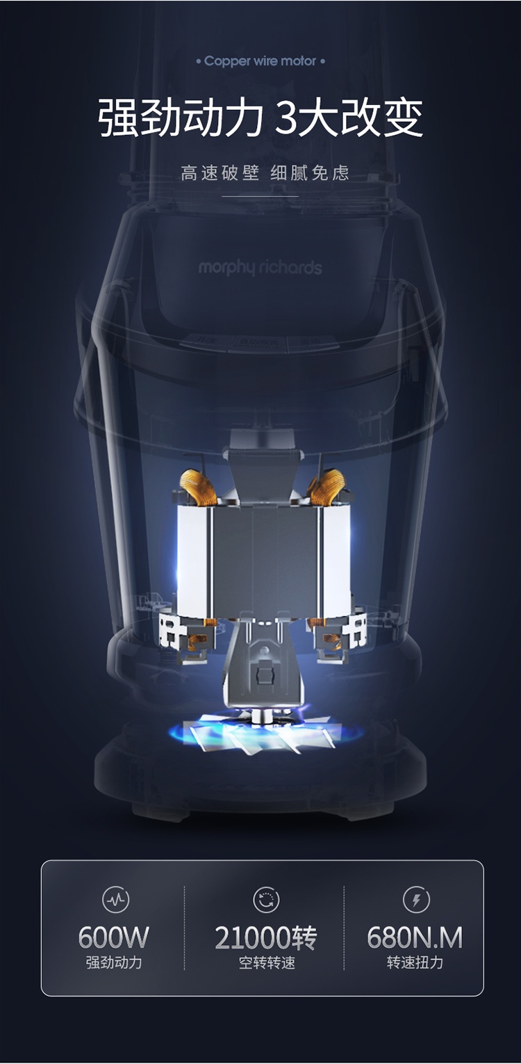 摩飞破壁机家用多功能料理机绞肉机小型水果榨汁机婴儿辅食搅拌器全自动低音果汁机MR9501 轻奢蓝(搅拌+榨汁机+研磨+破壁) 自营