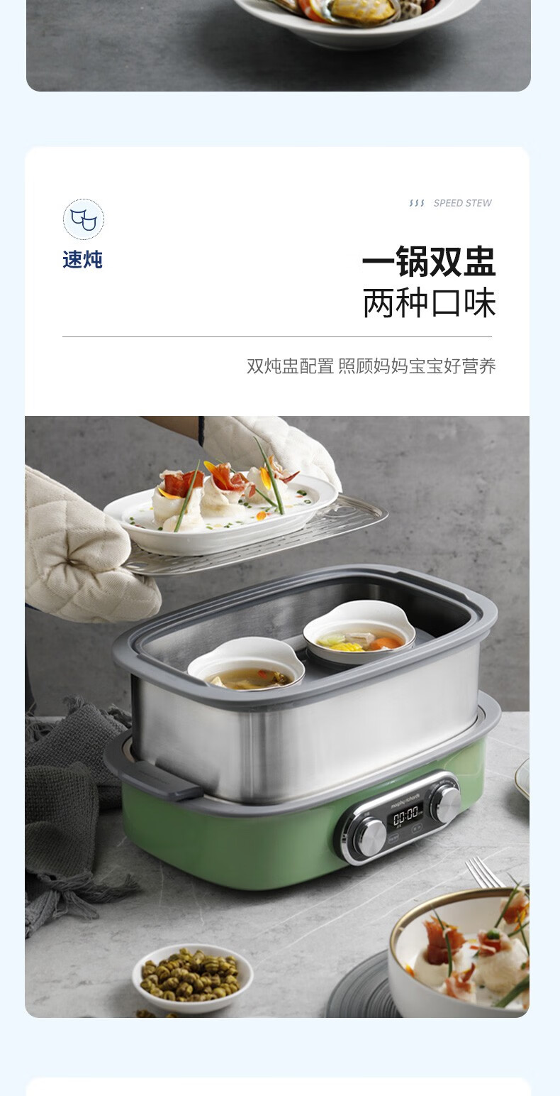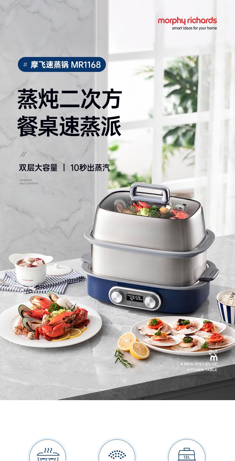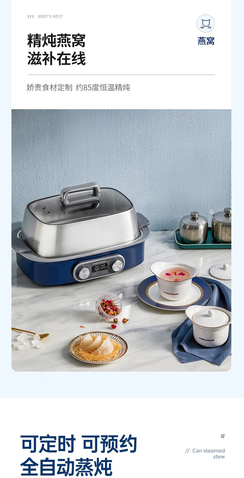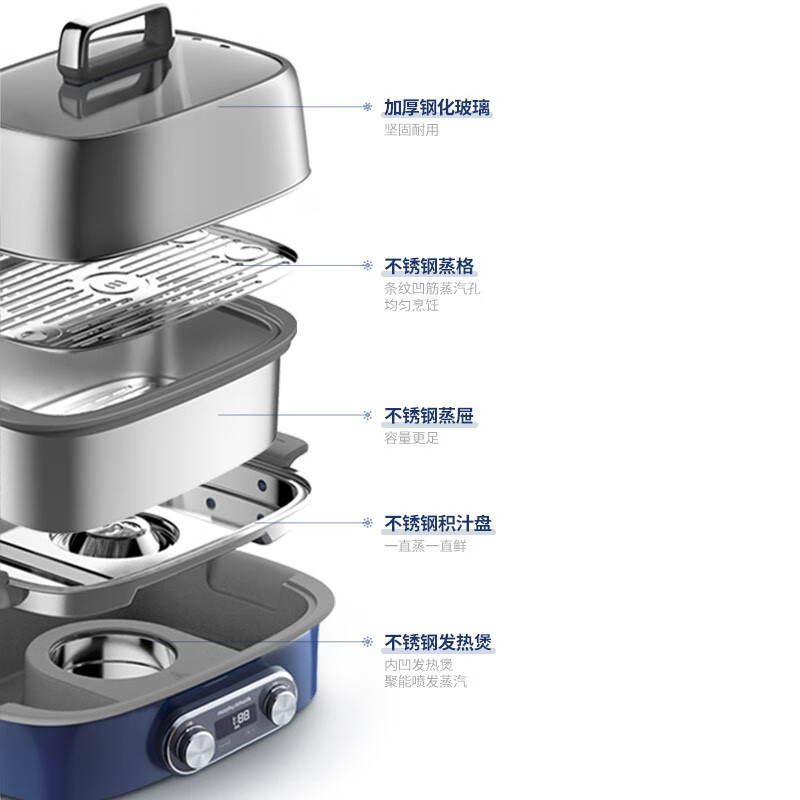 英国摩飞电蒸锅 蒸炖极速提升50% 家用隔水电炖锅炖燕窝炖汤蒸炖一体全自动蒸汽锅预约定时多功能蒸煮锅 不锈钢蒸屉配件MR1075 自营