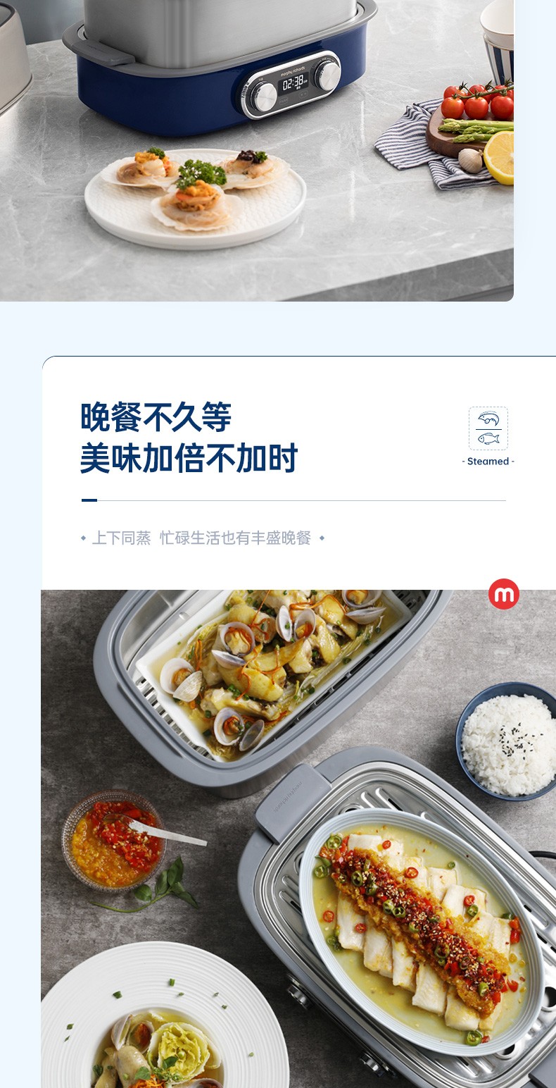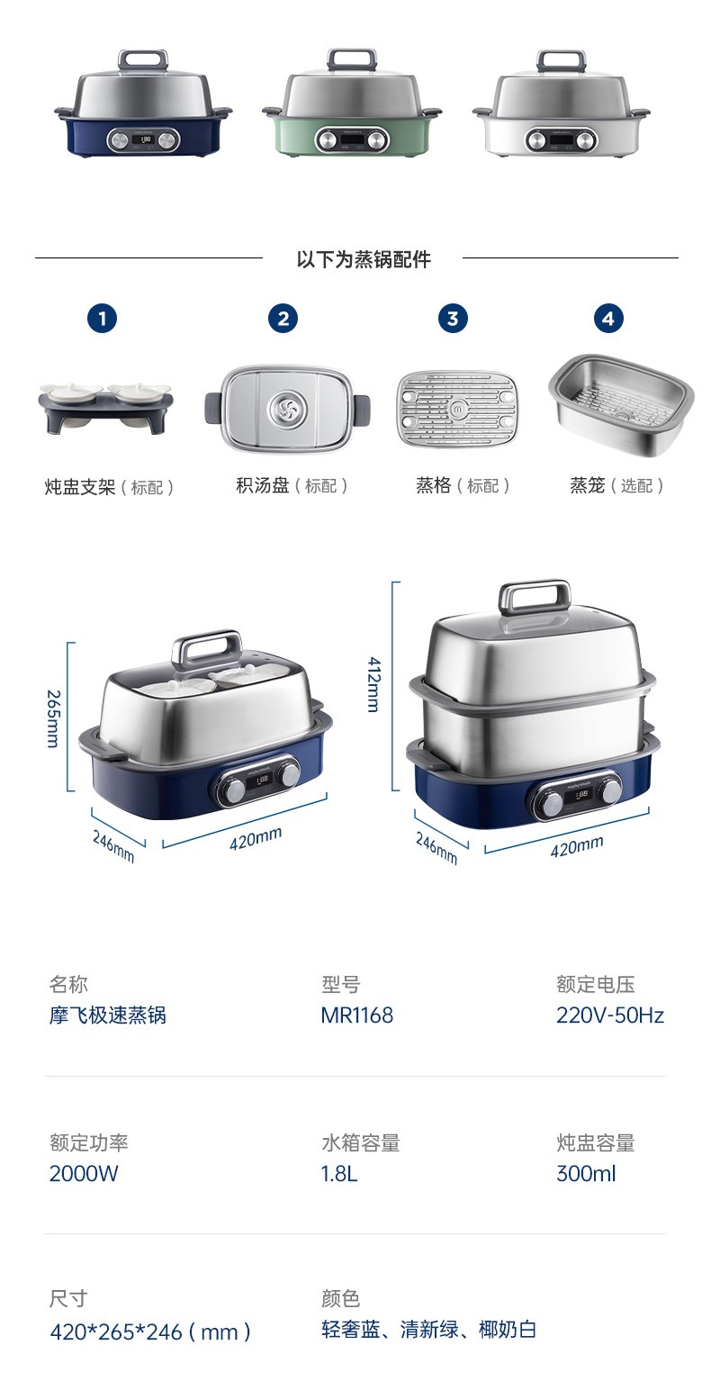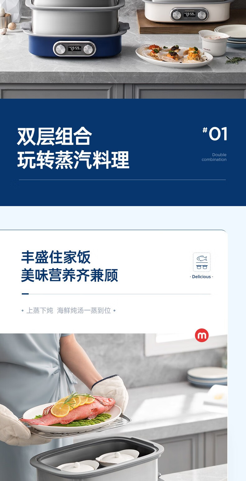 英国摩飞电蒸锅 蒸炖极速提升50% 家用隔水电炖锅炖燕窝炖汤蒸炖一体全自动蒸汽锅预约定时多功能蒸煮锅 不锈钢蒸屉配件MR1075 自营
