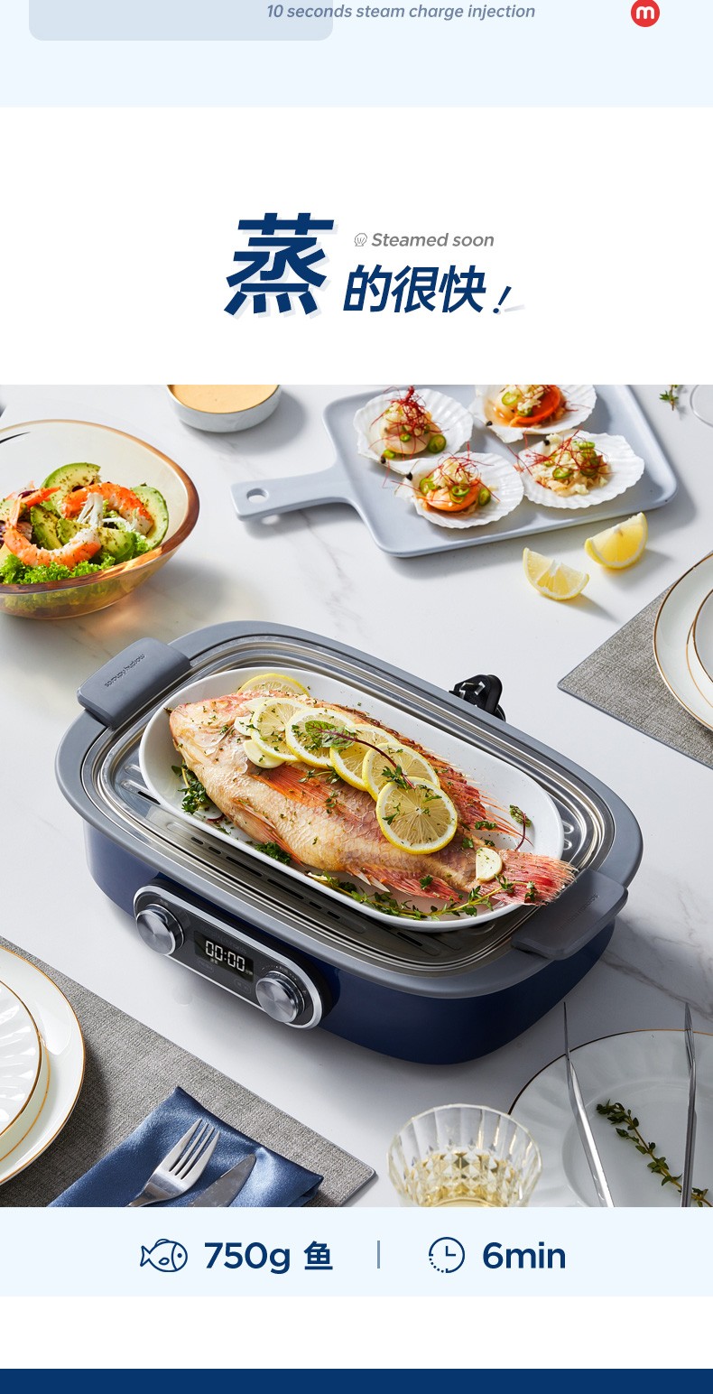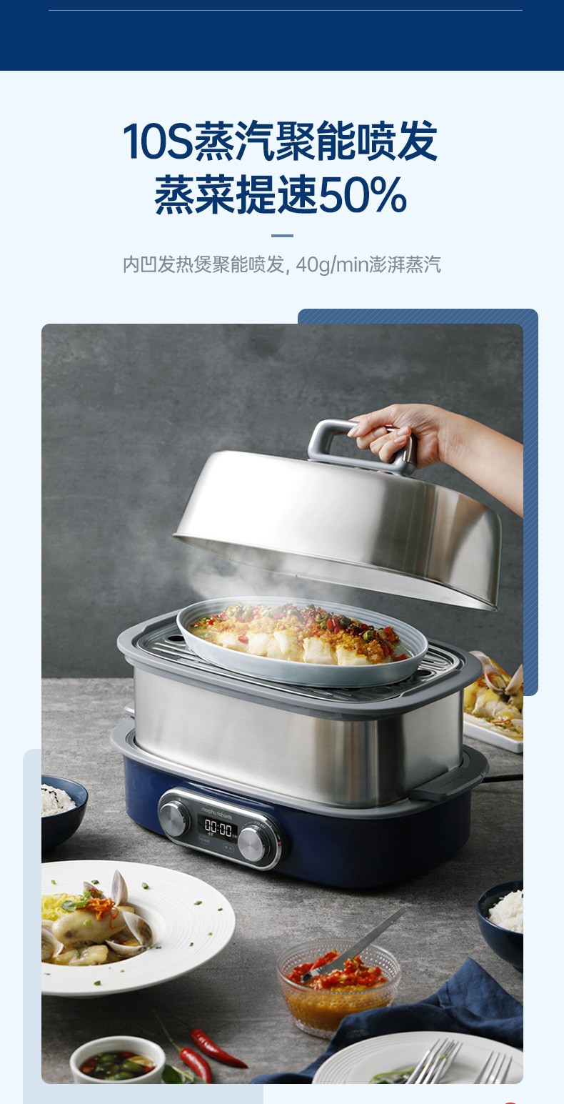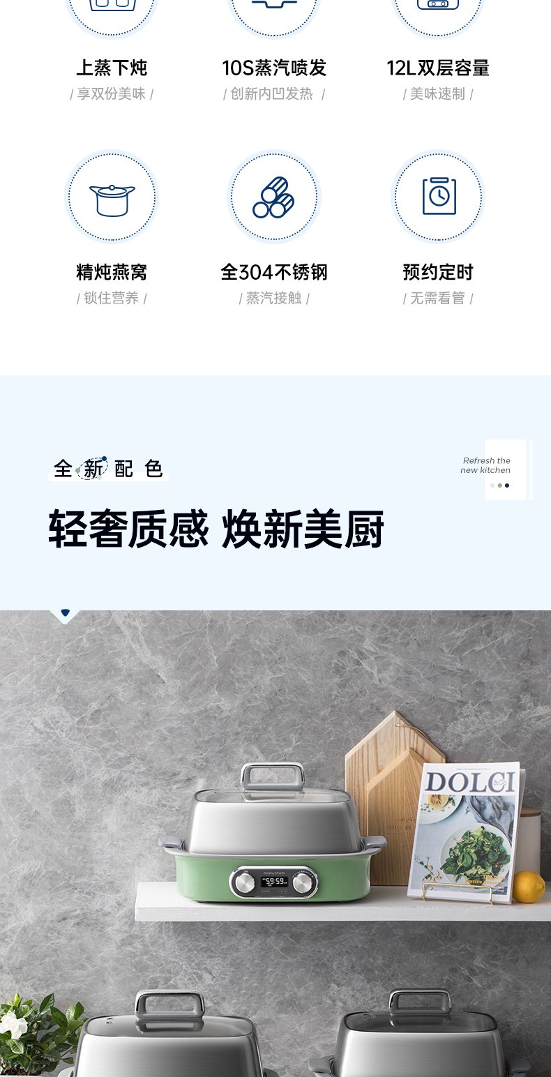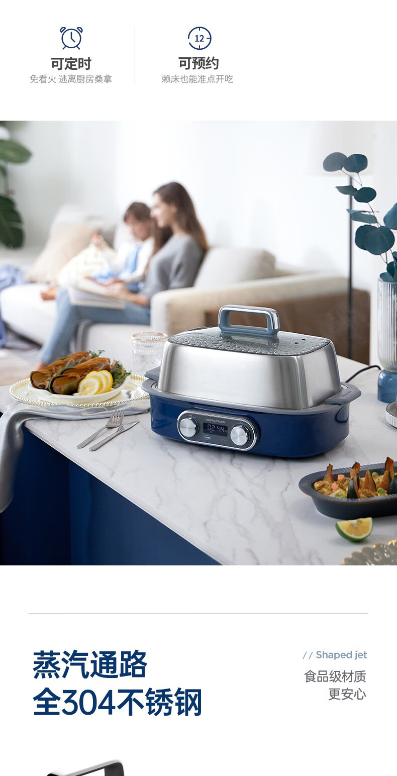 英国摩飞电蒸锅 蒸炖极速提升50% 家用隔水电炖锅炖燕窝炖汤蒸炖一体全自动蒸汽锅预约定时多功能蒸煮锅 不锈钢蒸屉配件MR1075 自营