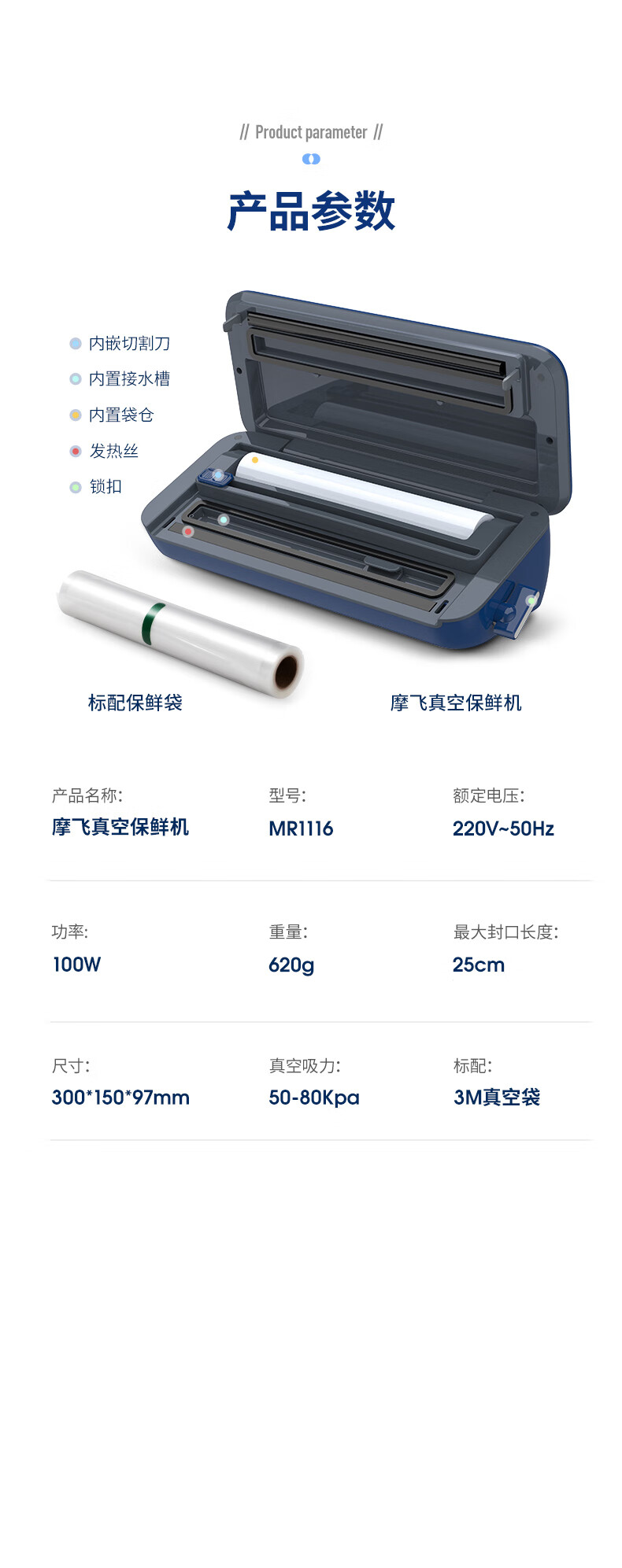 摩飞(Morphyrichards)真空封口机保鲜机家用真空包装机封口机干湿两用全自动食品抽真空料理机MR1116 自营