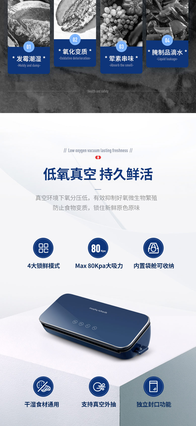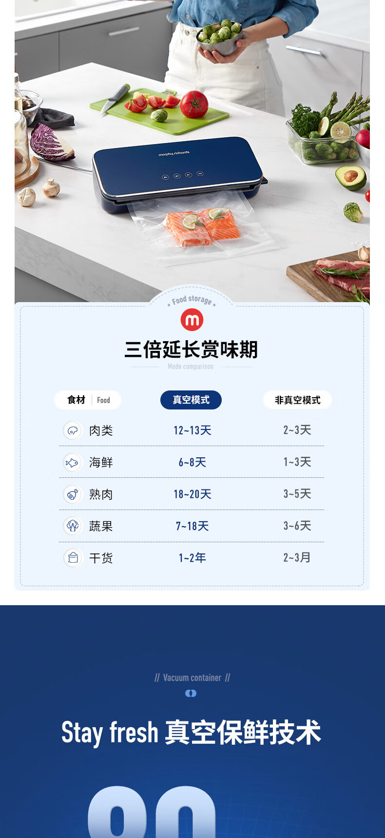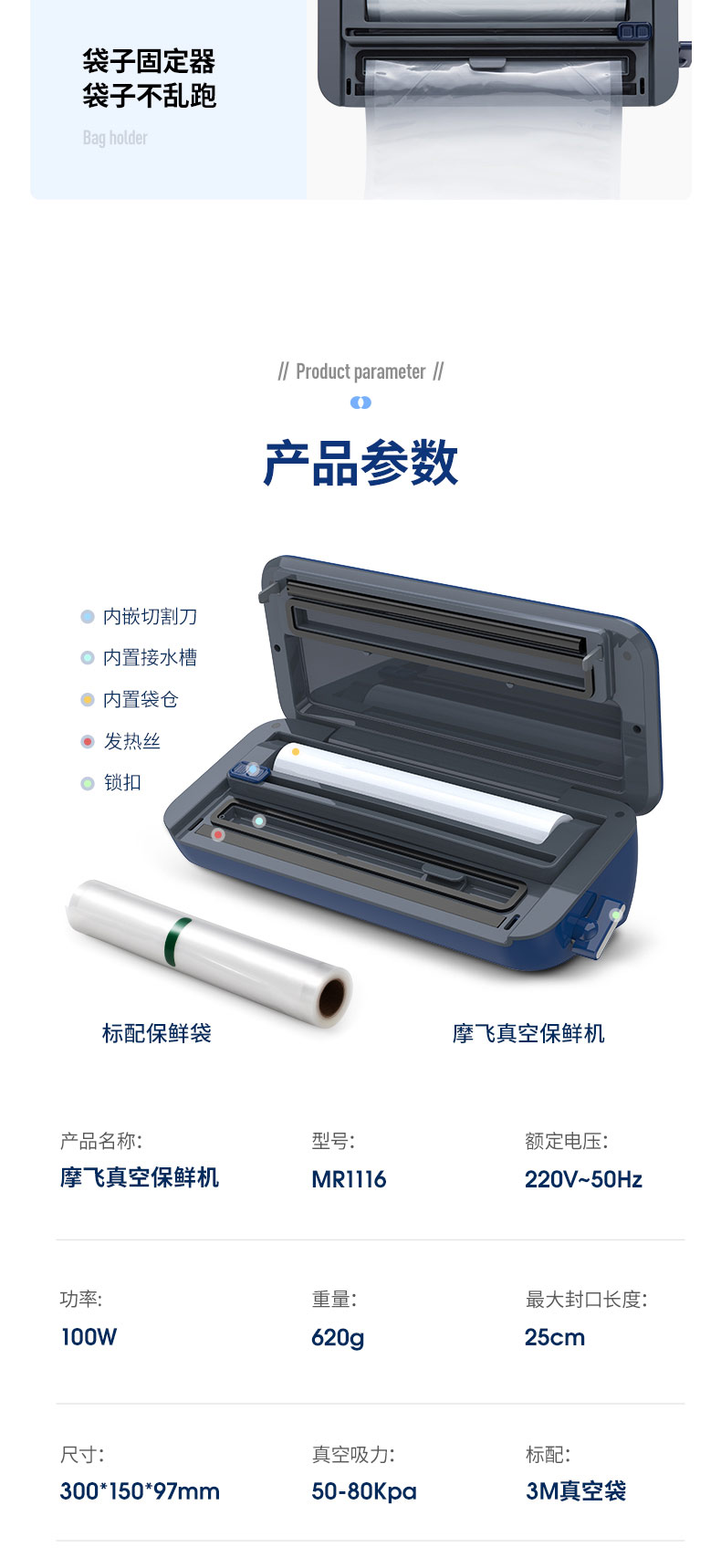 英国摩飞全自动抽真空封口机家用食品塑封机干湿两用包装机切割保鲜机MR1116配件- 摩飞真空保鲜卷MR1074 自营