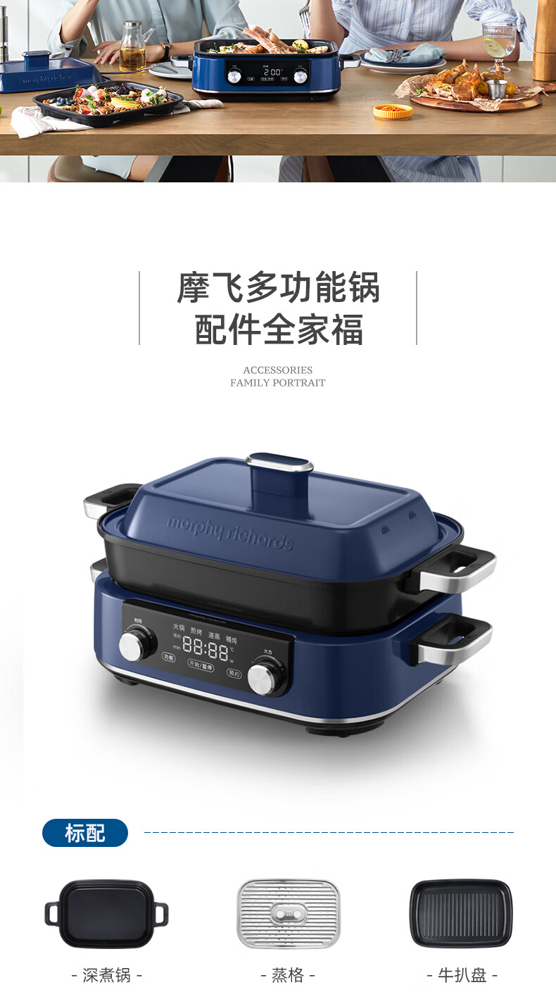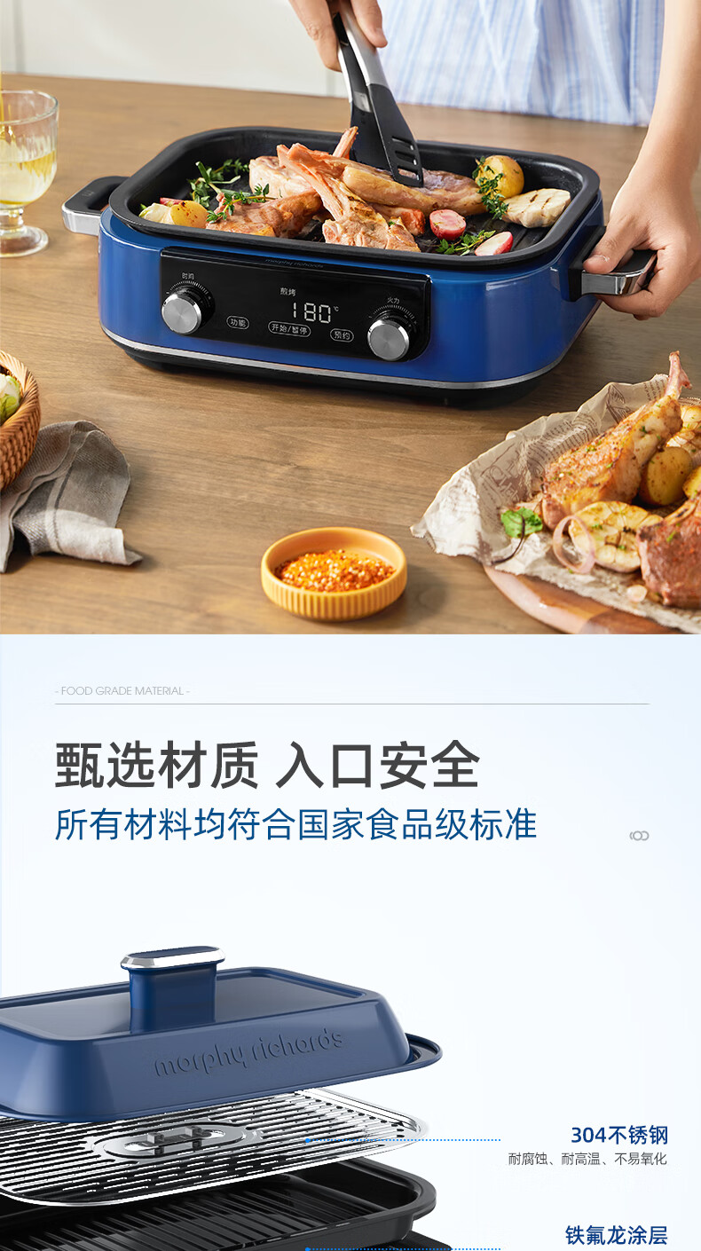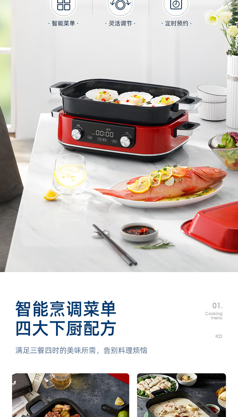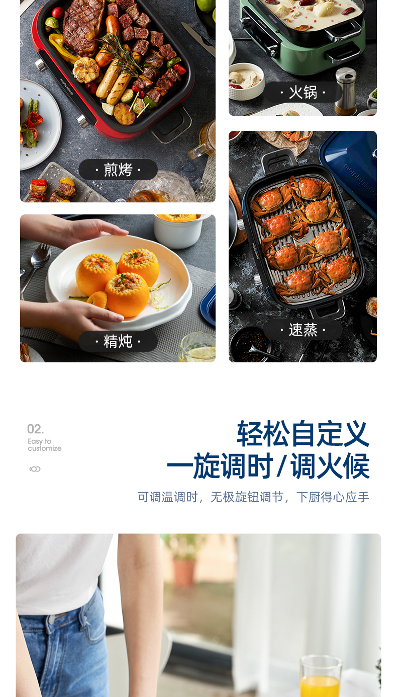 摩飞多功能锅二代分体电火锅魔飞家用烤肉涮煎蒸煮电热锅大容量升级触屏预约调时料理锅MR9099 清新绿 自营