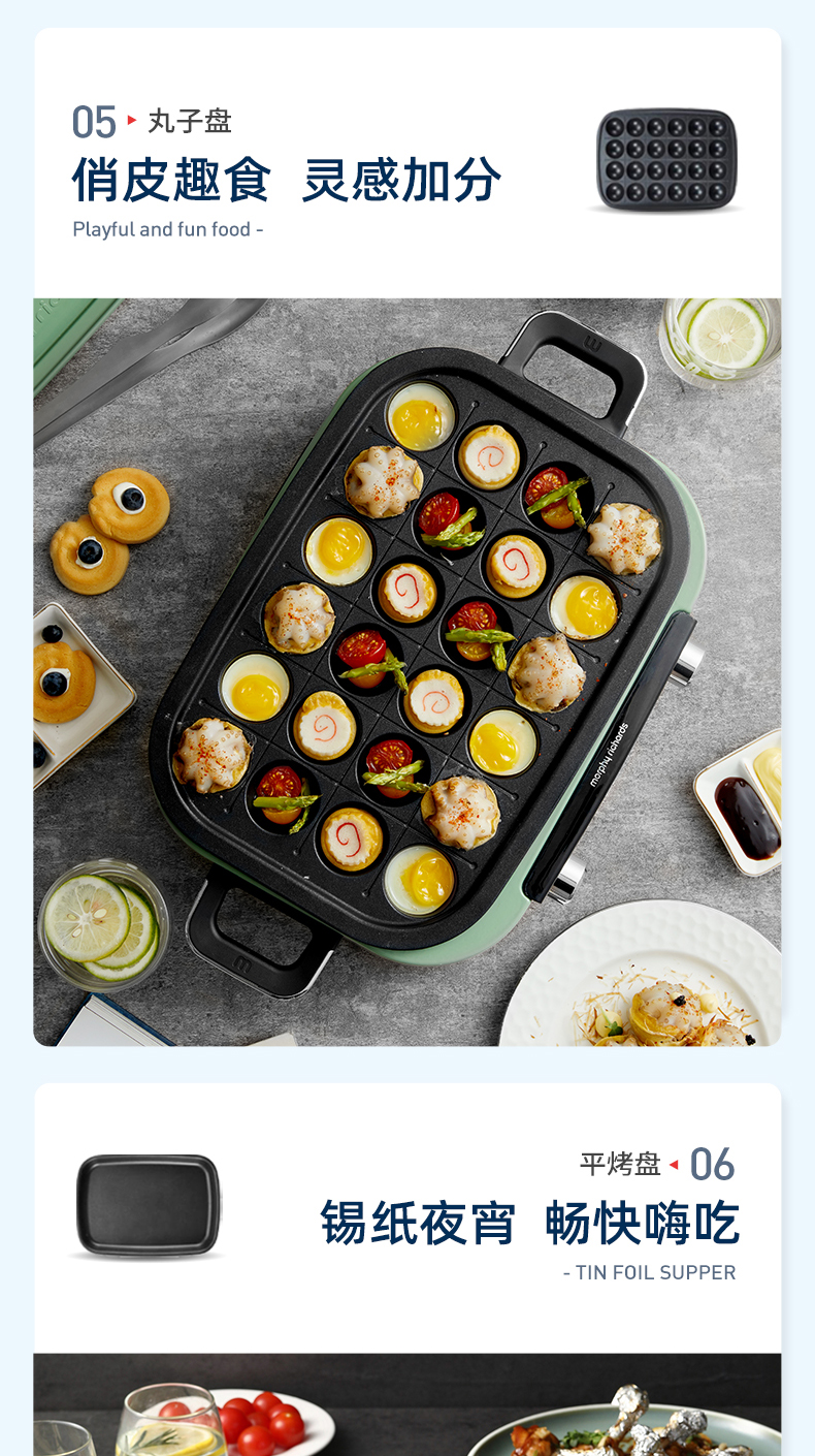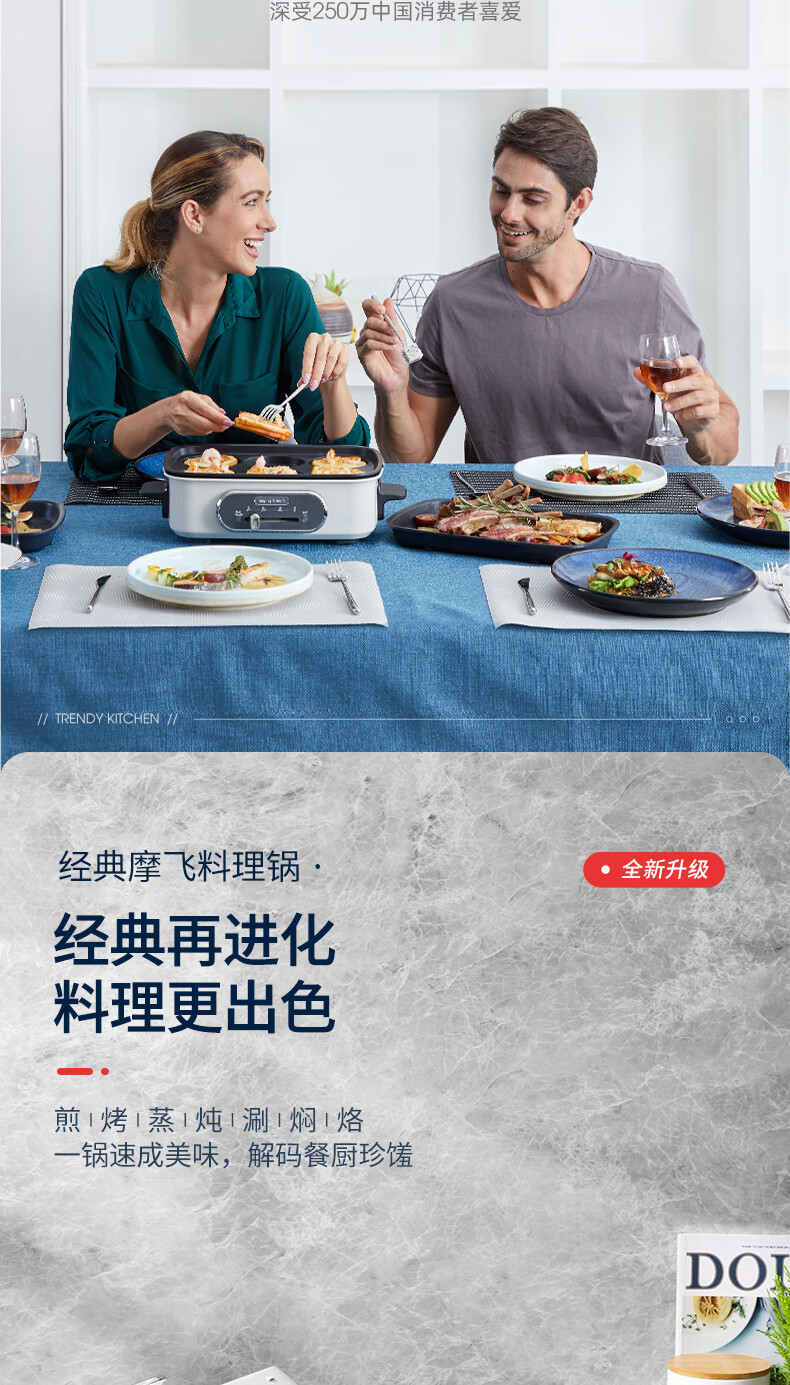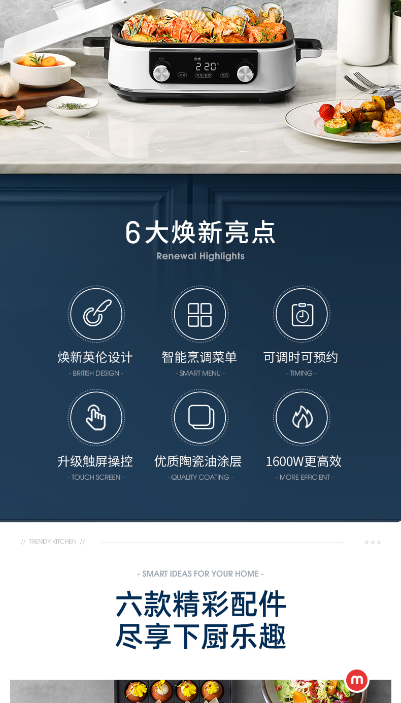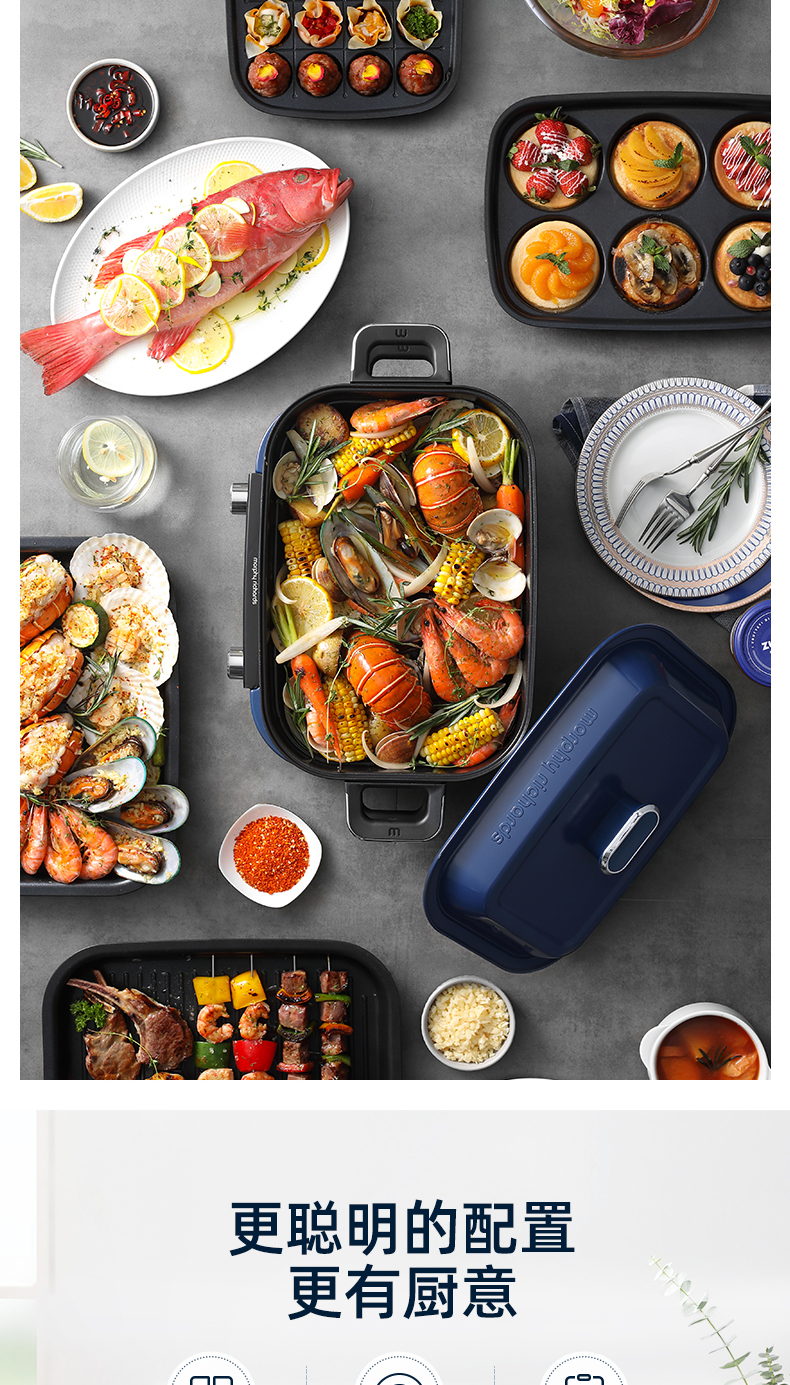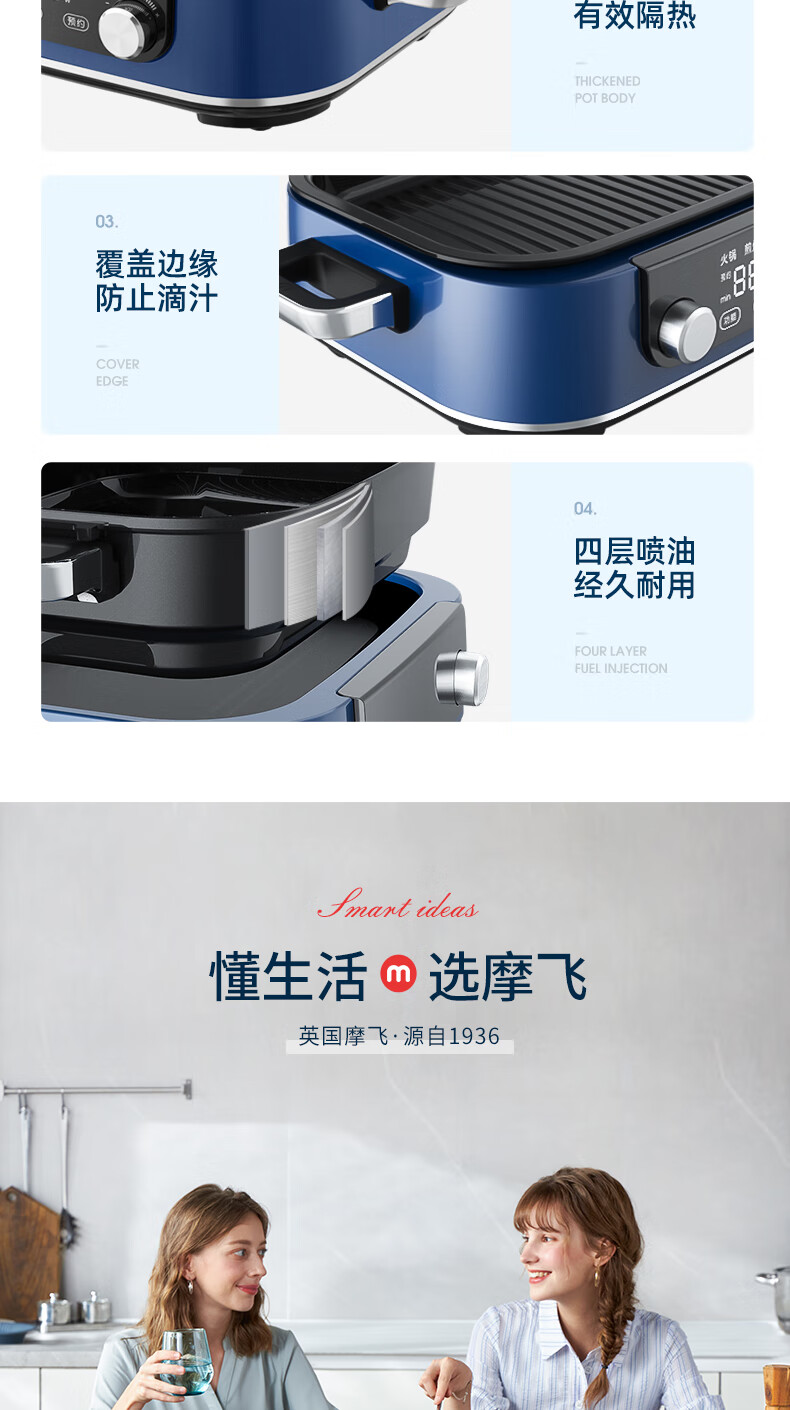 摩飞多功能锅二代分体电火锅魔飞家用烤肉涮煎蒸煮电热锅大容量升级触屏预约调时料理锅MR9099 清新绿 自营