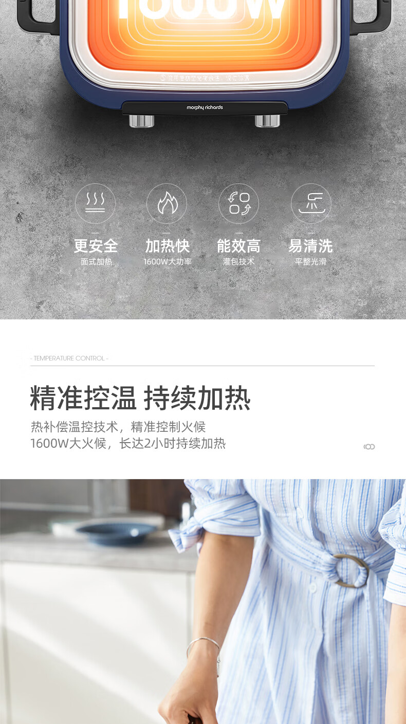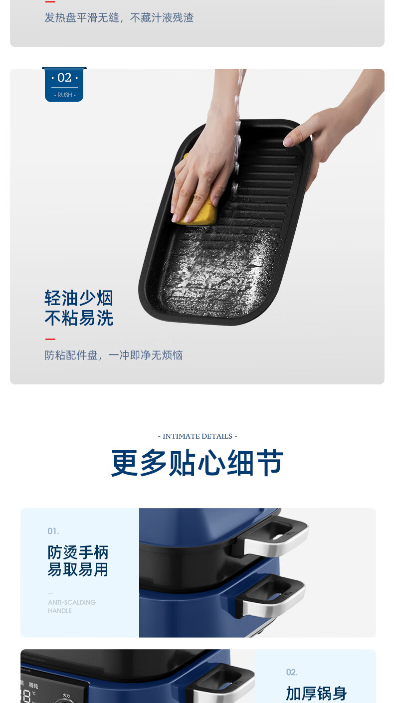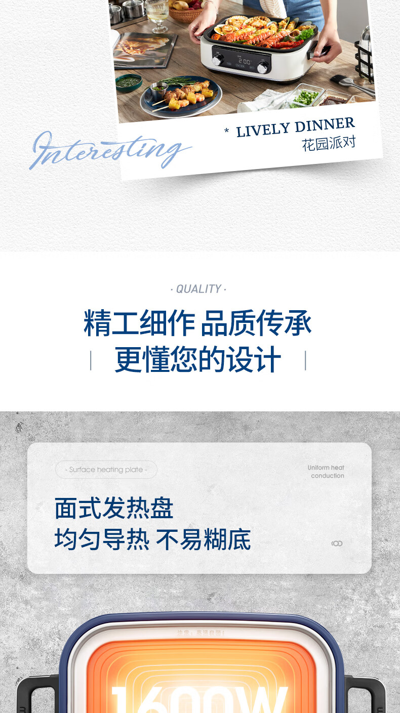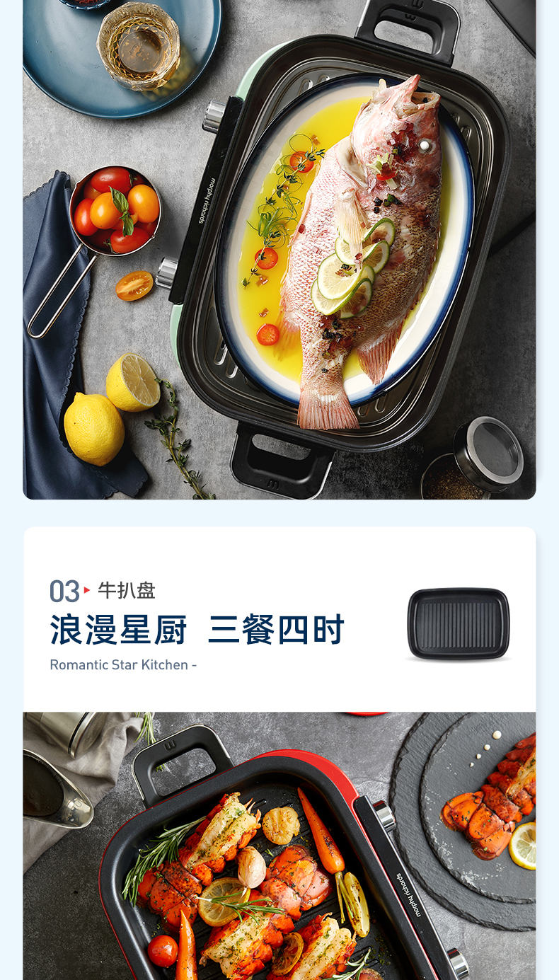 摩飞多功能锅二代分体电火锅魔飞家用烤肉涮煎蒸煮电热锅大容量升级触屏预约调时料理锅MR9099 清新绿 自营