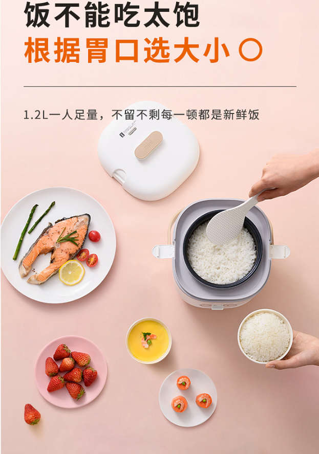 商品名称:九阳(Joyoung)电饭煲家用小电饭锅煮小米饭迷你240W小功率不沾内胆宿舍小火锅 白色(3升) 商品毛重:2.11kg 货号:F-12FZ618 操控方式:按键式 容量:2.1-3L 适用人数:1-2人 加热方式:底盘加热 功能:上盖可拆洗