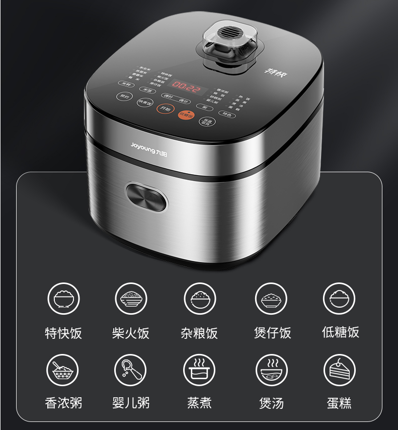 商品名称:九阳(Joyoung)电饭煲4L家用多功能电煮饭锅一键预约特快加热智能触控电饭锅 F40FY-F533 商品毛重:4.2kg 操控方式:触控式 容量:3.1-4L 适用人数:2-6人 加热方式:底盘加热 功能:快速饭,低糖饭