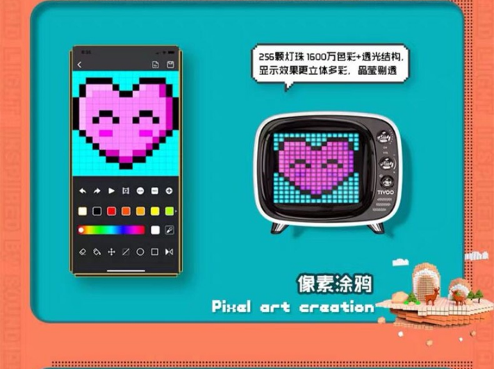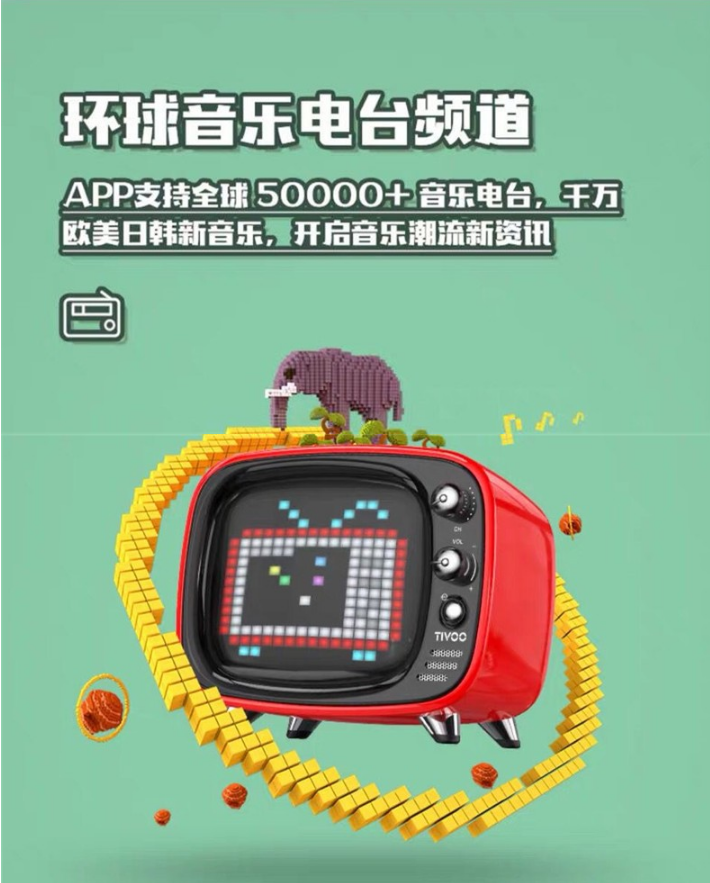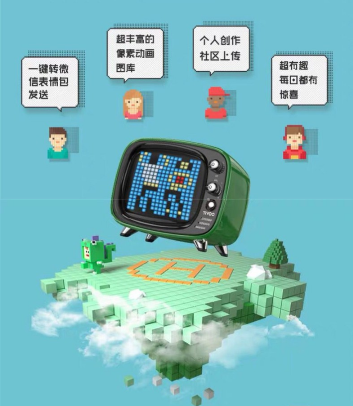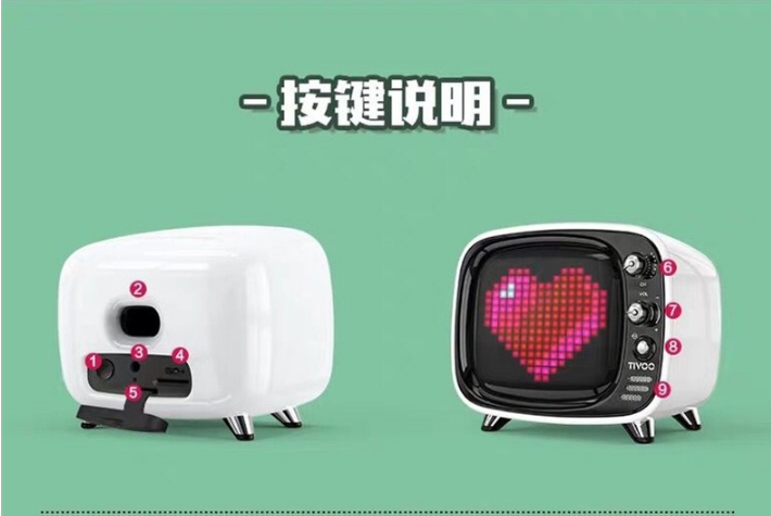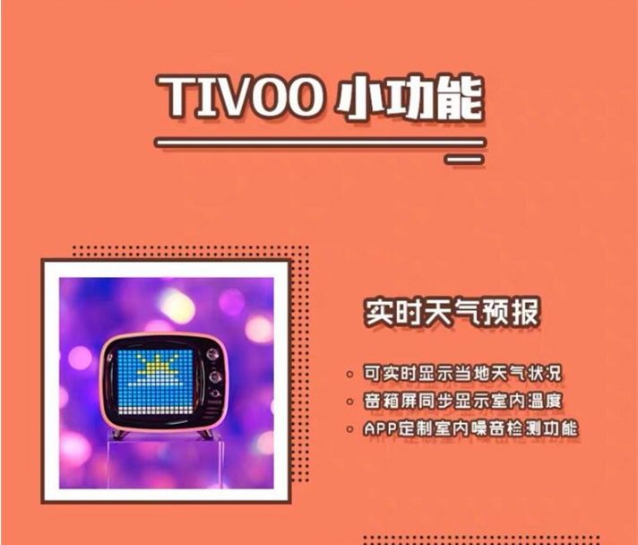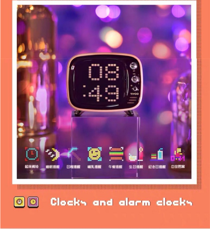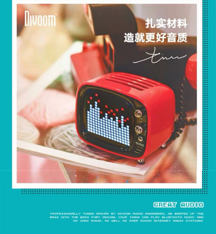 商品名称:Divoom 点音TIVOO迷你闹钟无线蓝牙智能音箱电视机录音TF插卡复古像素小音响 红色 商品毛重:400.00g 适用场景:K歌 类别:智能音箱