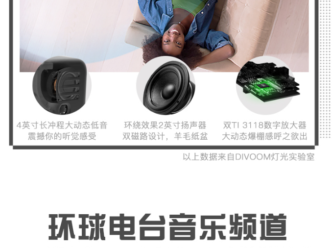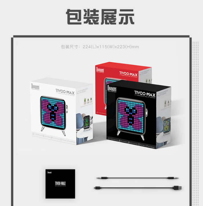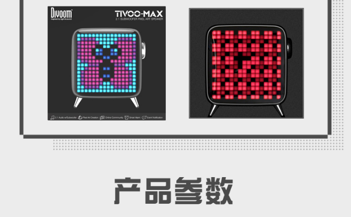 商品名称:DivoomTivoo-max 商品毛重:2.72kg 商品产地:中国大陆 货号:Tivoo-max 附加功能:APP操控 类别:HIFI发烧音箱 适用场景:家用