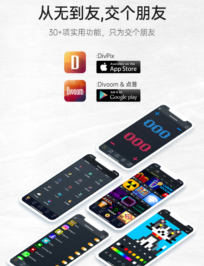 点音像素框 divoom点音PixooMax像素屏时钟显示器蓝牙车载表情屏相框LED摆件 PIXOO VJ 自营