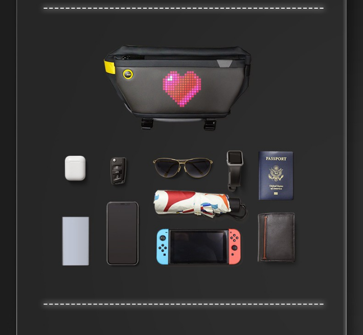 商品名称:DivoomPixoo-slingbag 商品毛重:1.5kg 商品产地:中国大陆 货号:Pixoo-SlingBag 材质:PU(聚氨酯) 里料材质:涤纶(聚酯纤维) 类别:斜挎包 上市时间:2021年夏季 附属肩带:单根 适用人群:青年,中年,青少年 内部结构:拉链暗袋,夹层拉链袋 闭合方式:拉链 风格:休闲风 包袋大小:中包 图案:纯色 流行元素:车缝线